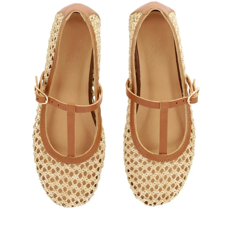 Aerati features a distinctive strap across the top and is available in a vachetta and raffia mix in natural tones. Perfect for the mid-season weather!