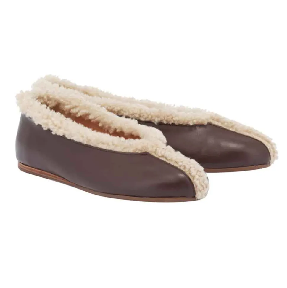 In nappa leather with sheepskin trims that run around the edge of the foot and down the centre of the vamp for a bold detail, this version of Aeropi offers a head-turning twist on the ballerina style that’s perfect for cooler weather. This is a slip-on shoe that you’ll reach for again and again for instant modern elegance and to add some texture to your look.