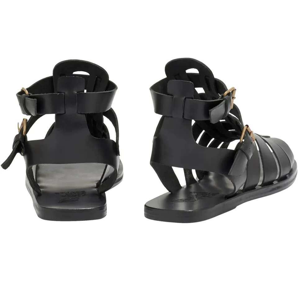 A bold gladiator style that is robust and promises to ground your look. The sandal brings traditional Greek styles to mind and features straps which cross the foot and two ankle straps, taking the sandal all the way up to the ankle. The crafted hardware and the raw edges are the considered details which speak to the craftsmanship of the sandal.