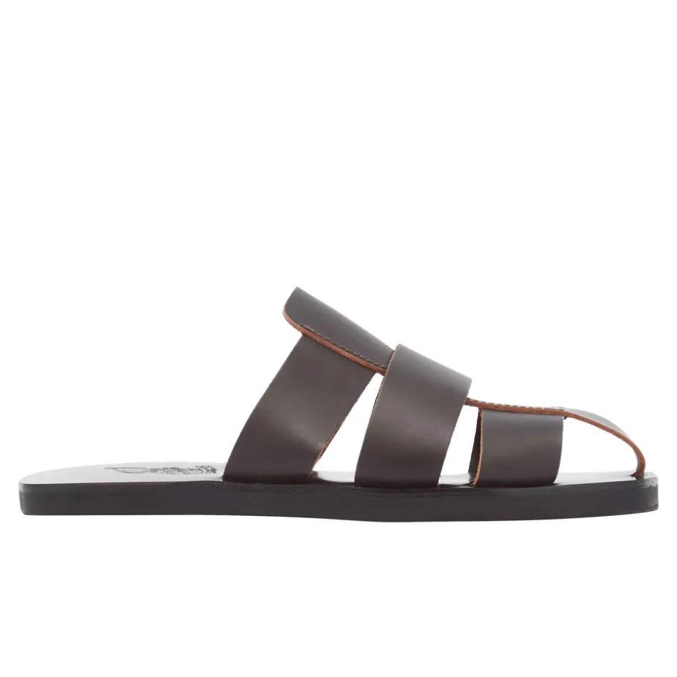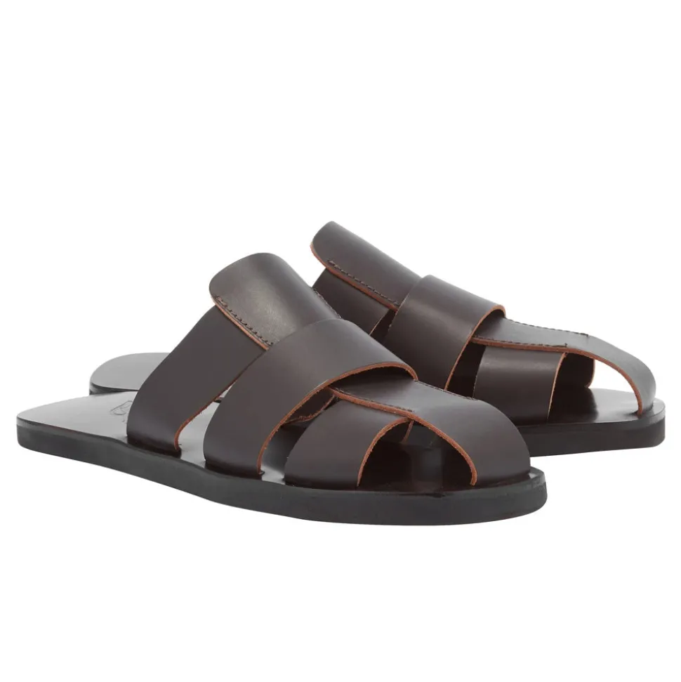 The Andreas is a slip-on style that plays on timeless design rooted in Greek craftsmanship – the signature aesthetic of Ancient Greek Sandals. Interwoven bands of vachetta leather sit on our footbed sole, which gives a little extra cushioning, and a bit more of a rugged look. Visible topstitching is the extra detail that sets these slides apart. Like all Ancient Greek Sandals’ creations, the Andreas is handmade in Greece.