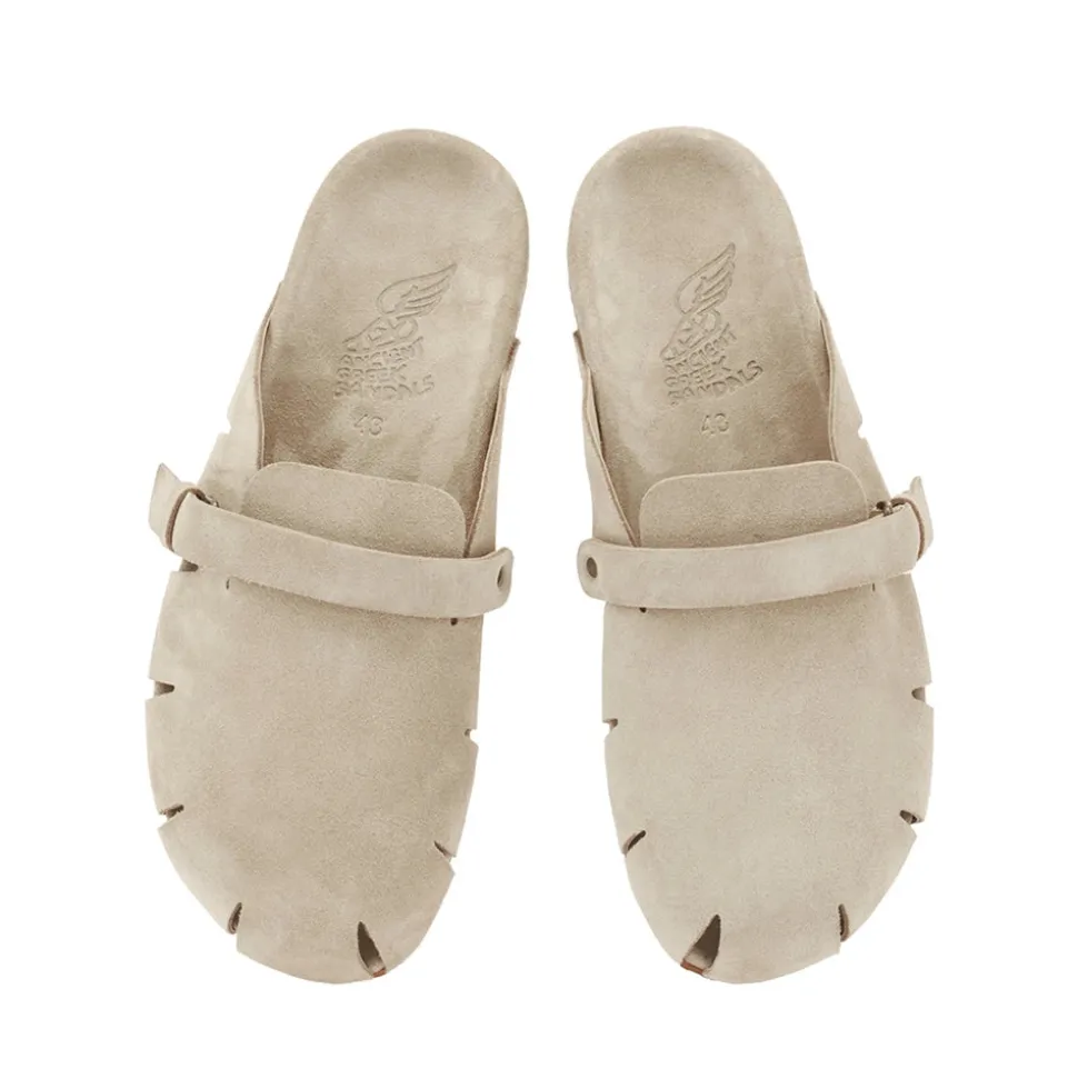 Atlas is a closed-toe slip-on design with a distinctive look. The sole is colour-matched to the Crosta suede uppers for a clean aesthetic, while the cut-outs around the side and the slide-through tab – concealing a buckle fastening – are fresh details to note. This is a supremely comfortable shoe that makes you feel like you are walking on clouds. Like all Ancient Greek Sandals’ creations, the Diogenis is handmade in Greece with an artisanal aesthetic and construction.