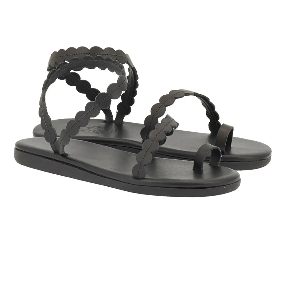 Aura’s cut-out leather straps wrap elegantly around the foot with simple stitching and a loop of leather around the toe. The aesthetic is barely there, but there’s a little more support in this sole than our original leather sole. Choose for elegance and support on vacation.