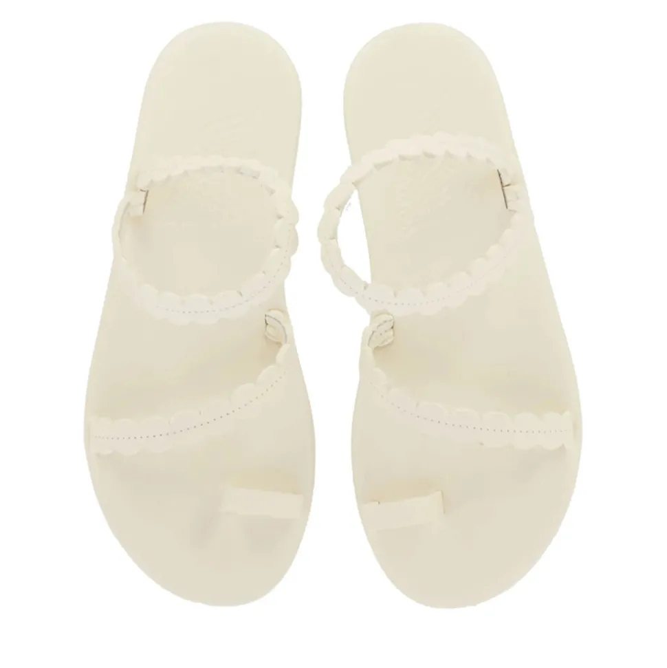Aura’s cut-out leather straps wrap elegantly around the foot with simple stitching and a loop of leather around the toe. The aesthetic is barely there, but there’s a little more support in this sole than our original leather sole. Choose for elegance and support on vacation.