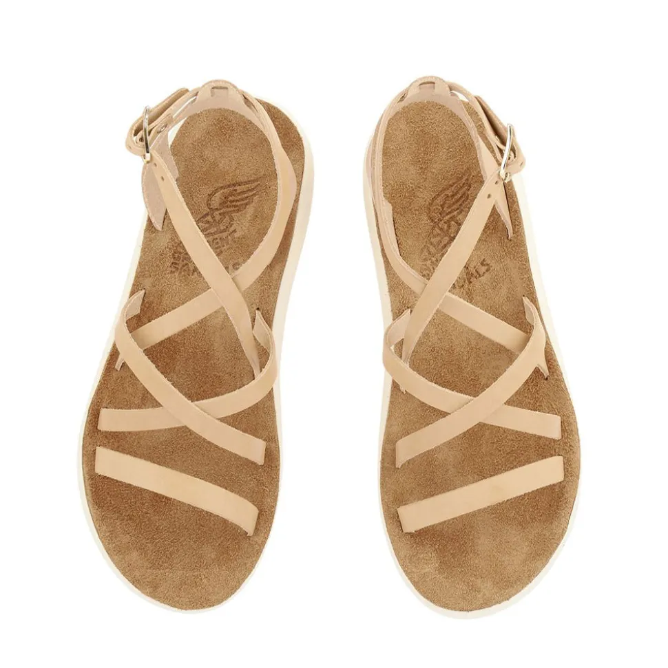 Our stylish Delia design gives a new twist to a classic pair of Ancient Greek Sandals. Hand-cut with crossover and wraparound soft leather straps, they’re made with a heightened suede sole for a little more protection. Plus, the extra lift will create a flattering silhouette against your favourite shorts or sundress.