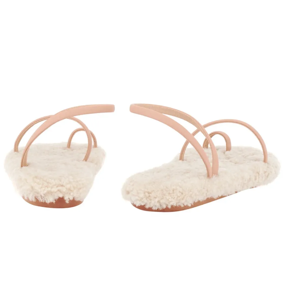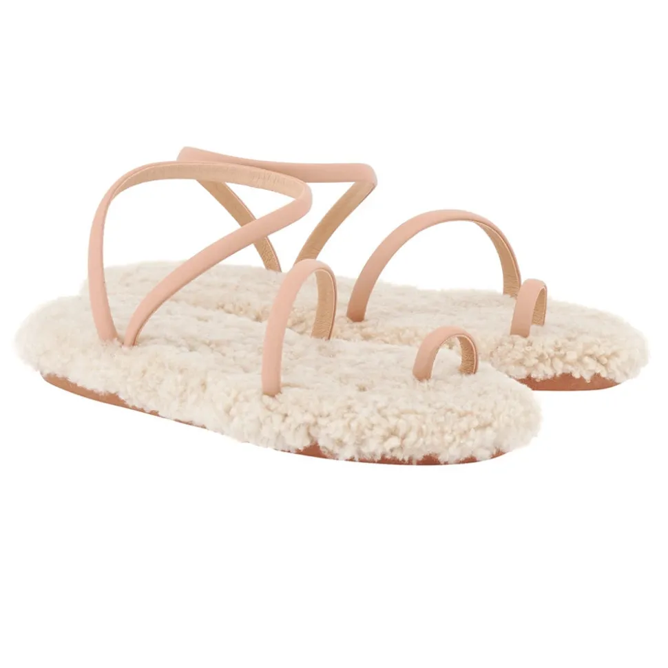The barely-there Eleftheria sandal has a new trick: a sheepskin-lined cushioned insole. There’s a playful contrast between the minimalist nappa leather straps and the luxurious texture of the sheepskin, creating a head-turning style that’s a seasonal must. We love this style with a floor-sweeping dress for entertaining at home.