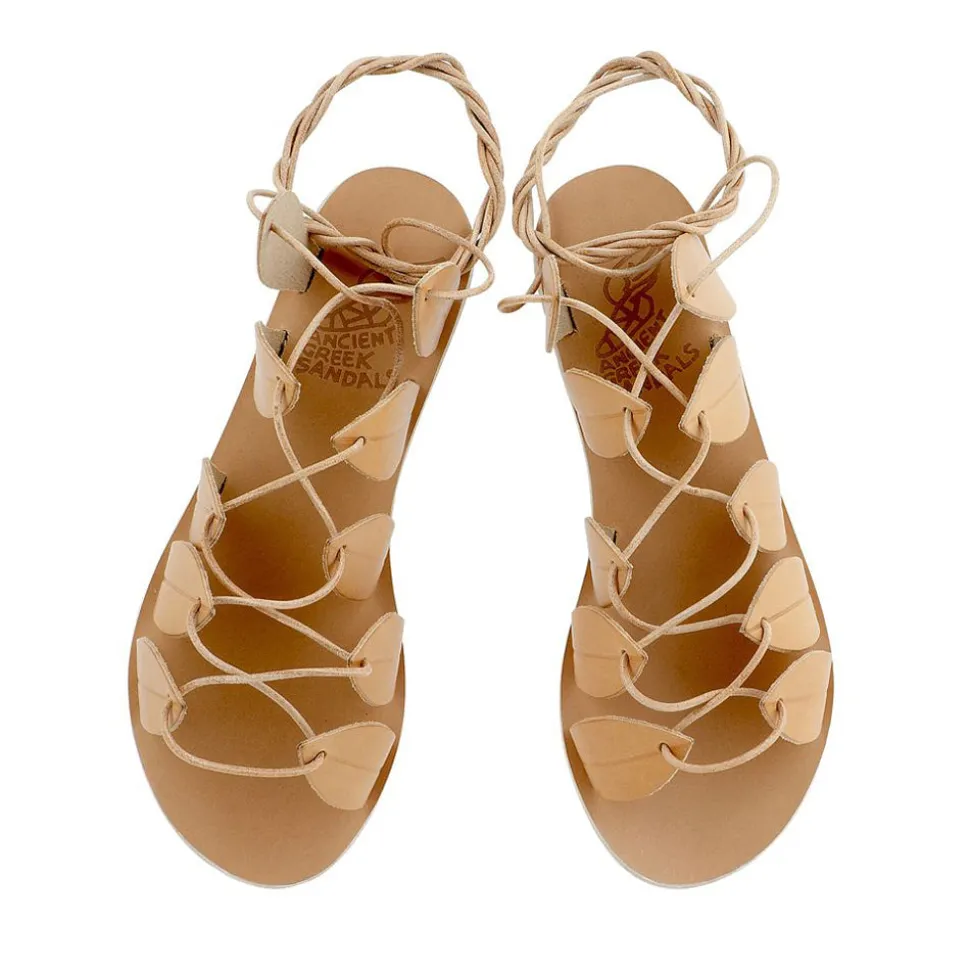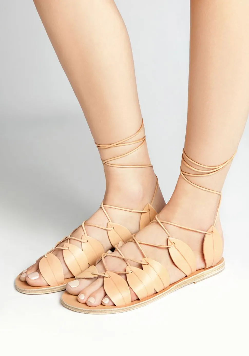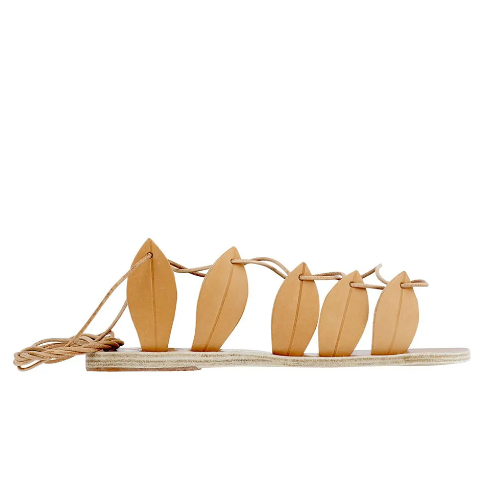 This style features delicate leather leaves, making the leather thong’s meandering progress up your leg feel all the more organic. Encasing your foot like the petals of a flower around its precious pollen center, this sandal protects and adorns your feet as you take on each summer’s day. Wear with florals – what else – for the perfect warm-weather choice.