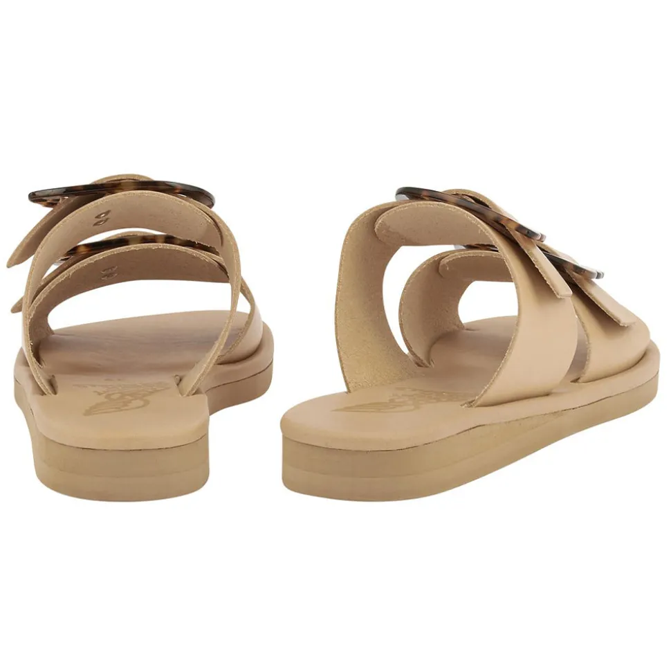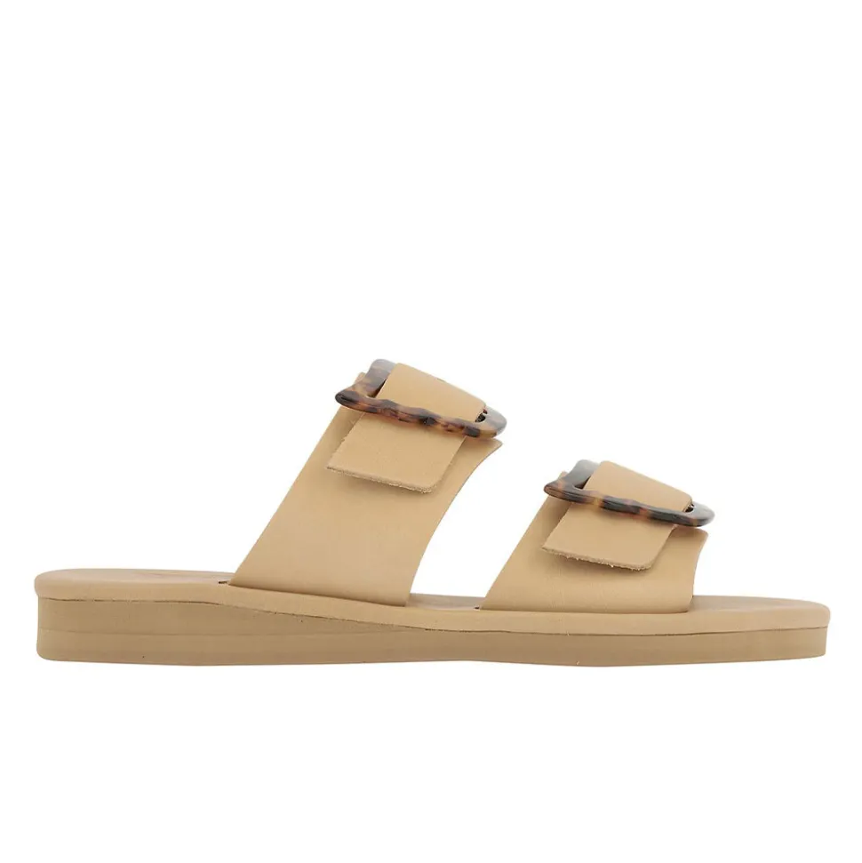 Rendered in high-shine leather and adorned with an over-sized wing buckle, these sandals are the sleek fashion-forward option for day-to-night city adventures. Two broad straps, each bearing our signature buckle, secure the foot – making them perfect for a summer on the go.