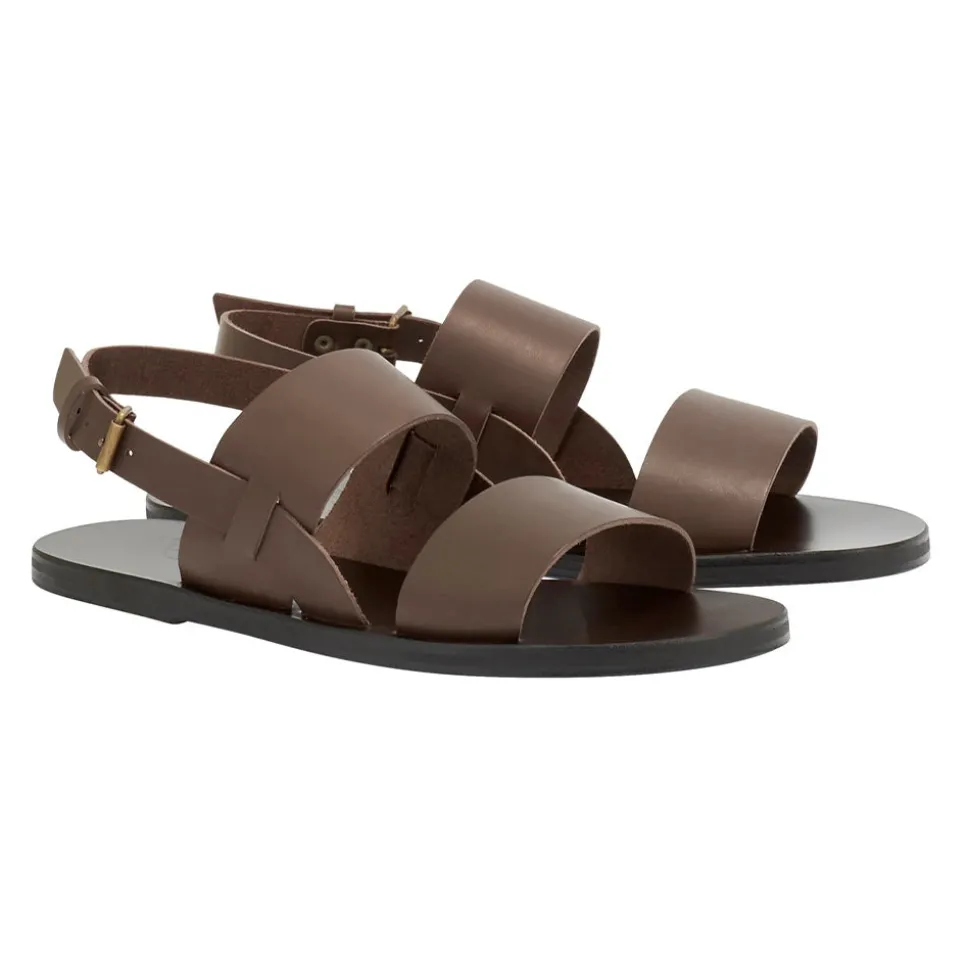 Two raw-edged wide bands of leather cross the foot, with a backstrap and buckle for adjustments at the ankle. The characteristic streamlined sole and raw edges nod to the traditional craftsmanship showcased in all our sandals. Irodotos is bold but simple and pairs beautifully with the simplest of vacation separates – think cool shorts and linen shirts.
