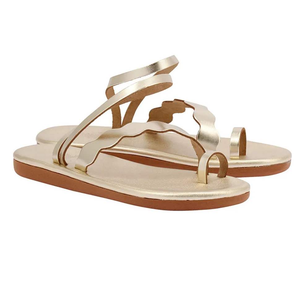 Named after the Greek word for coral, our Koralia sandals are handmade from sus-tainably sourced, recycled leather. Cut with a slightly elevated sole and fitted with a comfortable toe post, this glamorous gold design is also effortlessly comfortable.