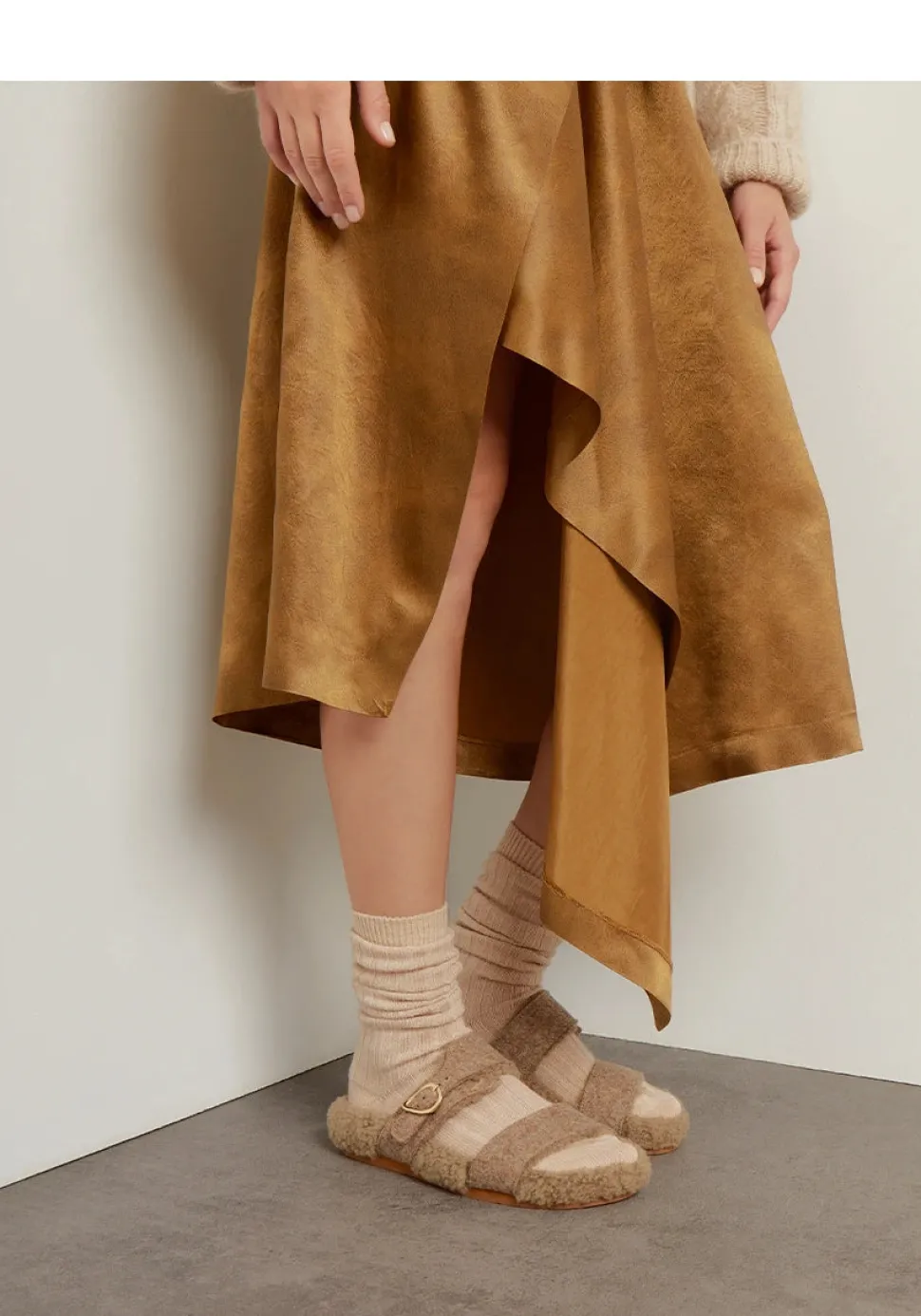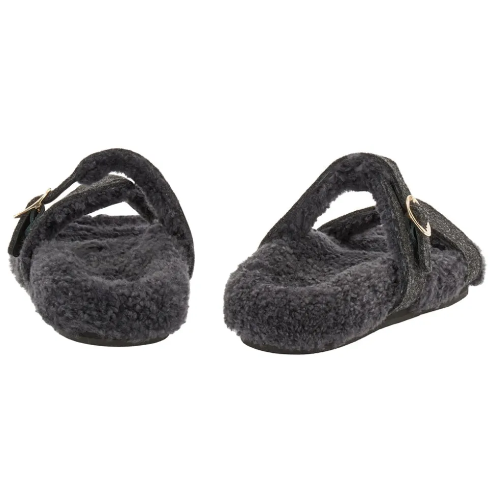 Slip into the Latria – and relax. Our double-strap slide has felt straps and a footbed lined in sheepskin, for an equally sumptuous feel whether you’re running errands in the city or entertaining at home. Choose your shade from a palette of soft neutrals and pair with your softest socks. Note the signature wing-shaped buckle for adjustments.