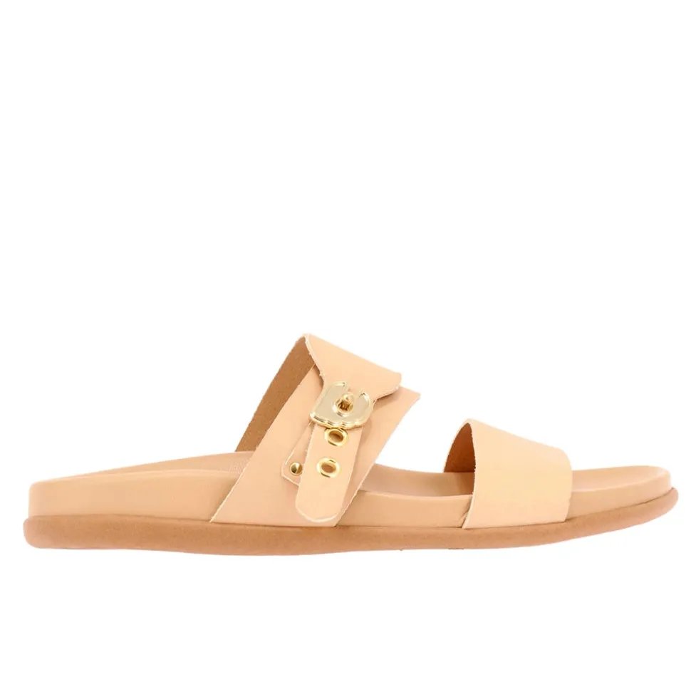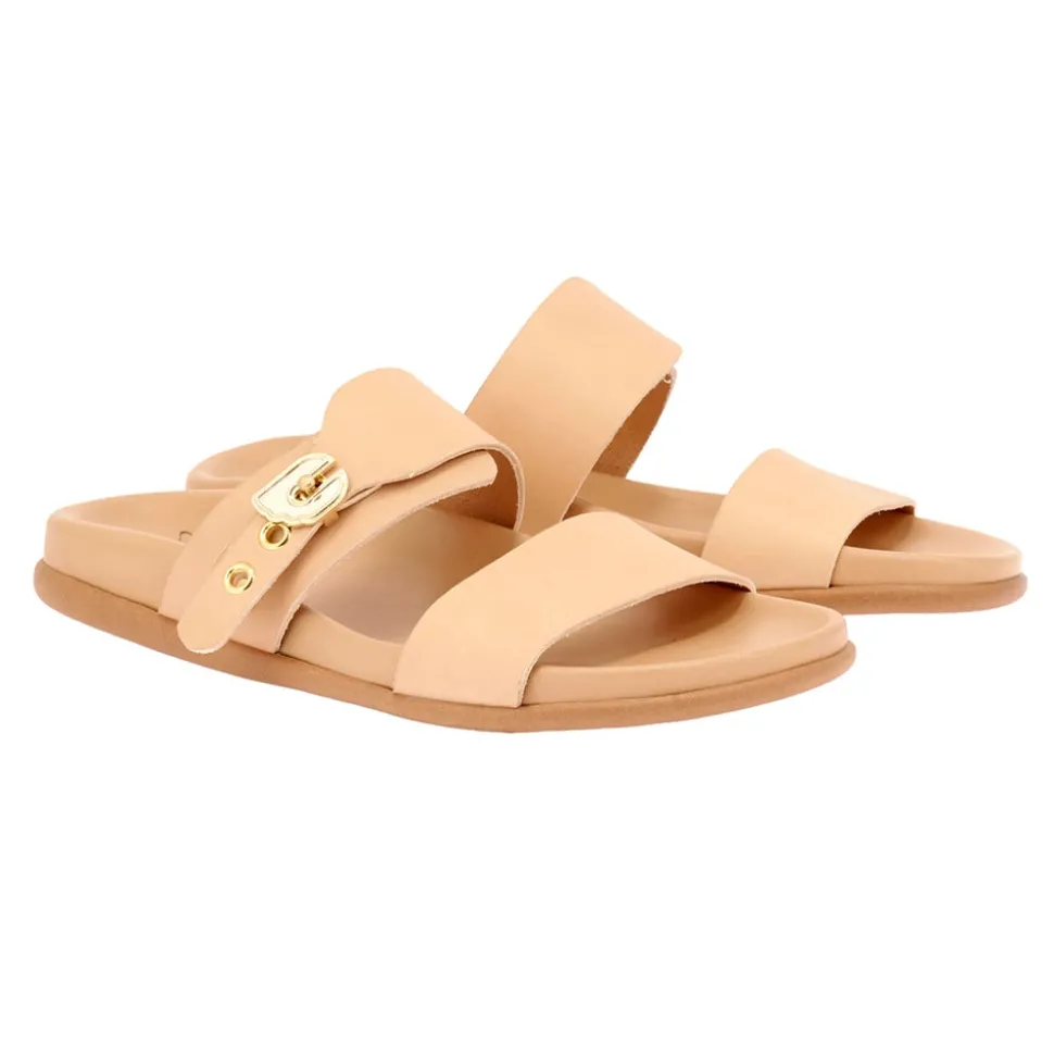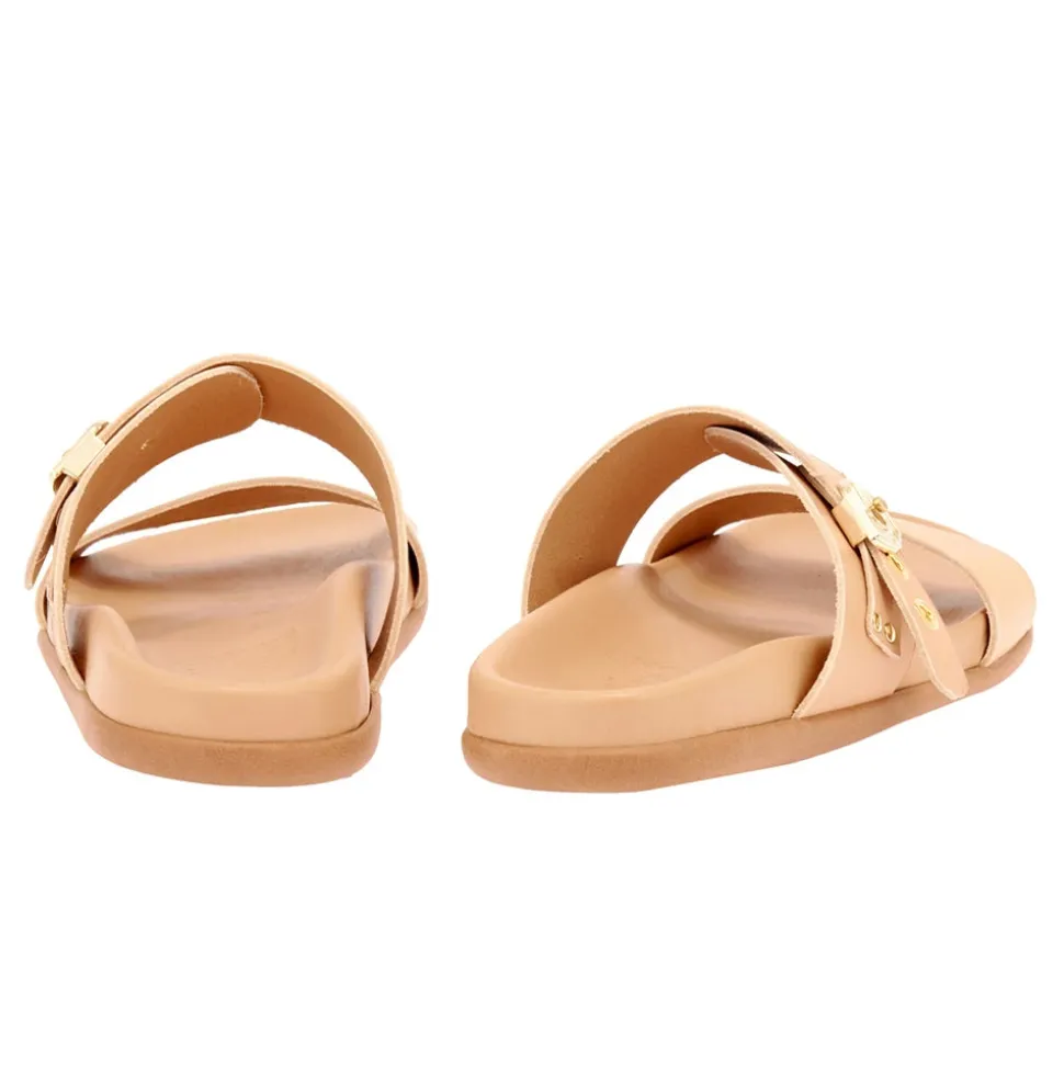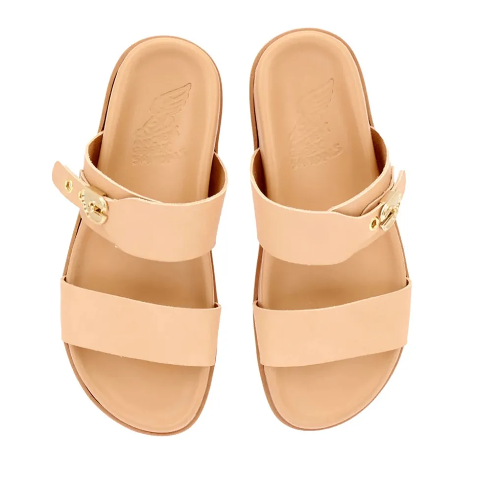 For Resort 23, a brand-new construction has been developed to be worn all day with comfort. The molded footbed gives extra comfort and arch support and is covered in soft nappa leather in tone with the vachetta leather uppers. This new construction is featured on our new Latria which is a double strap slide.