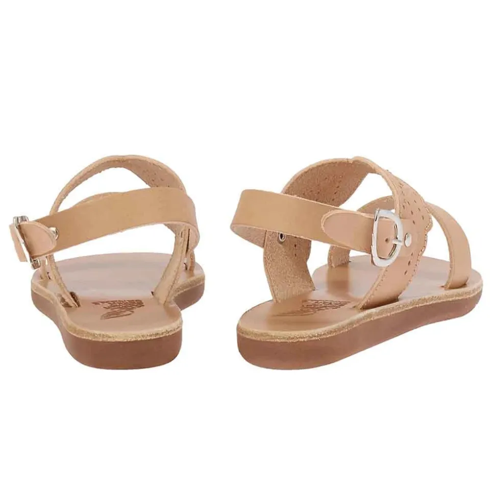 The Odyssey sandal embodies timeless Greek elegance with a modern touch. Handcrafted in Greece from premium natural leather, this minimalist yet feminine style features a scalloped ankle strap with delicate perforated detailing and an adjustable metal buckle for a secure fit.