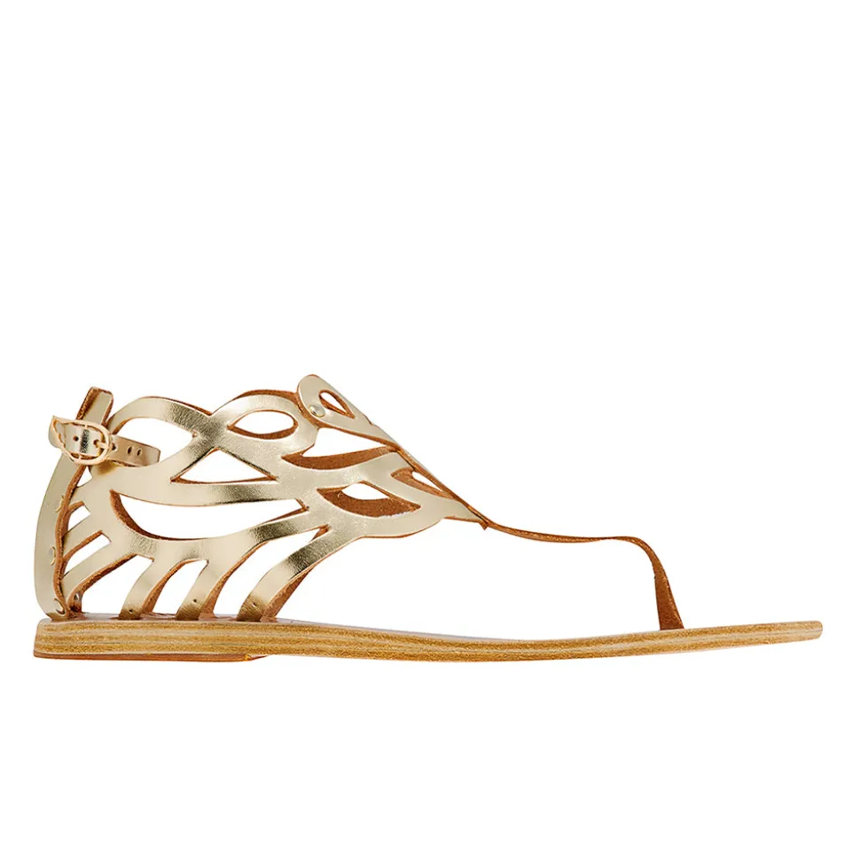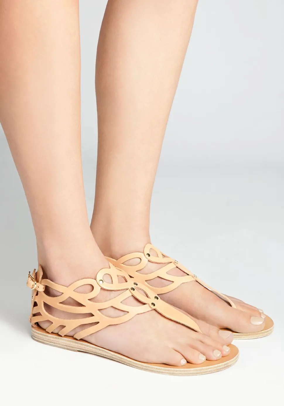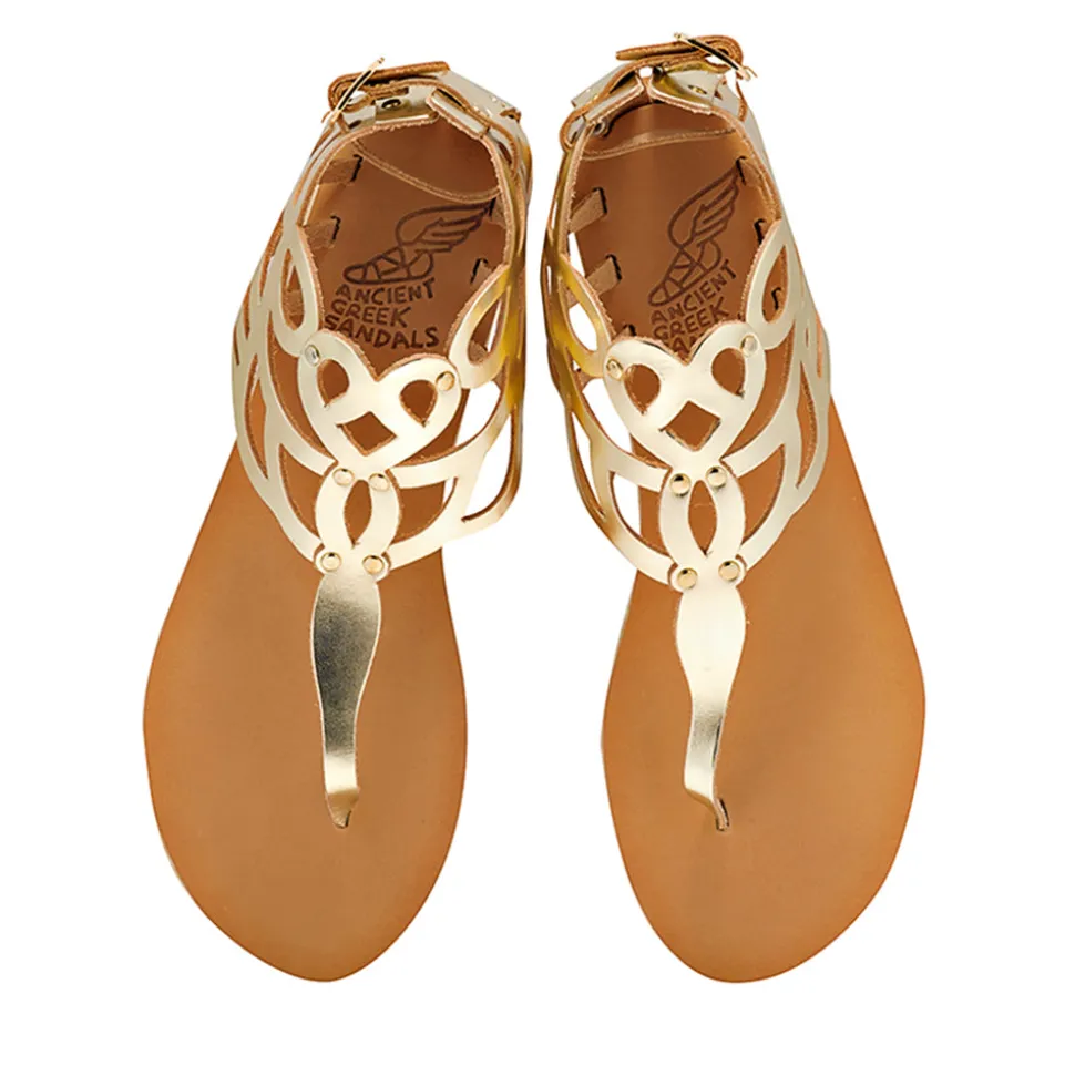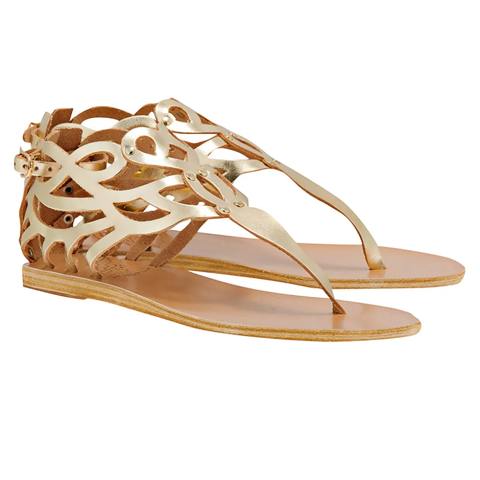 A network of looping leather cut-outs cover the foot, for a sandal that has been a firm favourite since the birth of our brand. With firm grounding in the loops and swirls of ancient Greek architecture, this style is as flattering as it is comfortable. Delicate silver studs affix the elegant central column, from the toes to the ankle, creating a sandal that’s just as wearable for dancing nights as for lazy days.