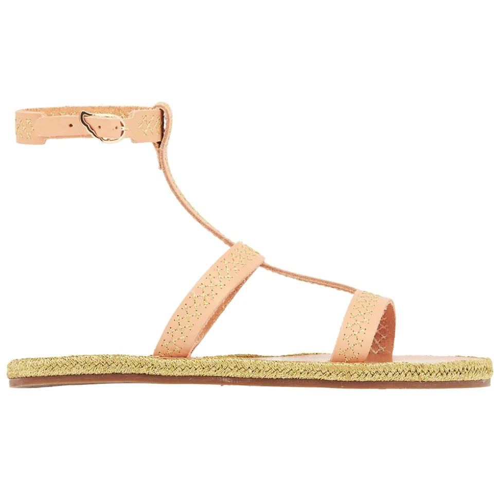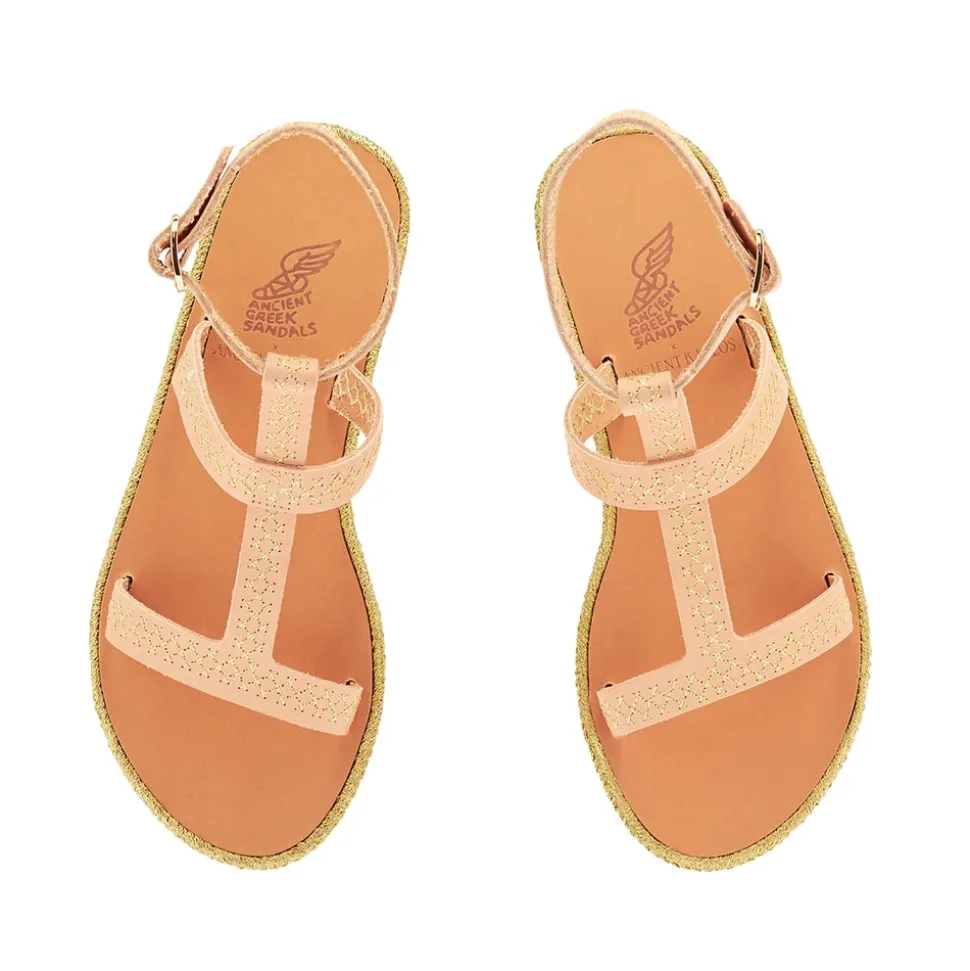 Created in close collaboration with sustainably-focused resort wear brand Ancient Kallos, this limited-edition espadrille sandal is adorned with traditional golden cord – a signature element of Ancient Kallos. The cross-stitch embroidery plays across the natural tan leather in whichever shade you choose – and ties in with the slimline espadrille rope sole, also in glimmering gold. Note the Ancient Greek Sandals signature winged buckle at the ankle. This is an elegant sandal that prioritizes detail – pair with simple summer separates or pieces that highlight traditional craftsmanship.