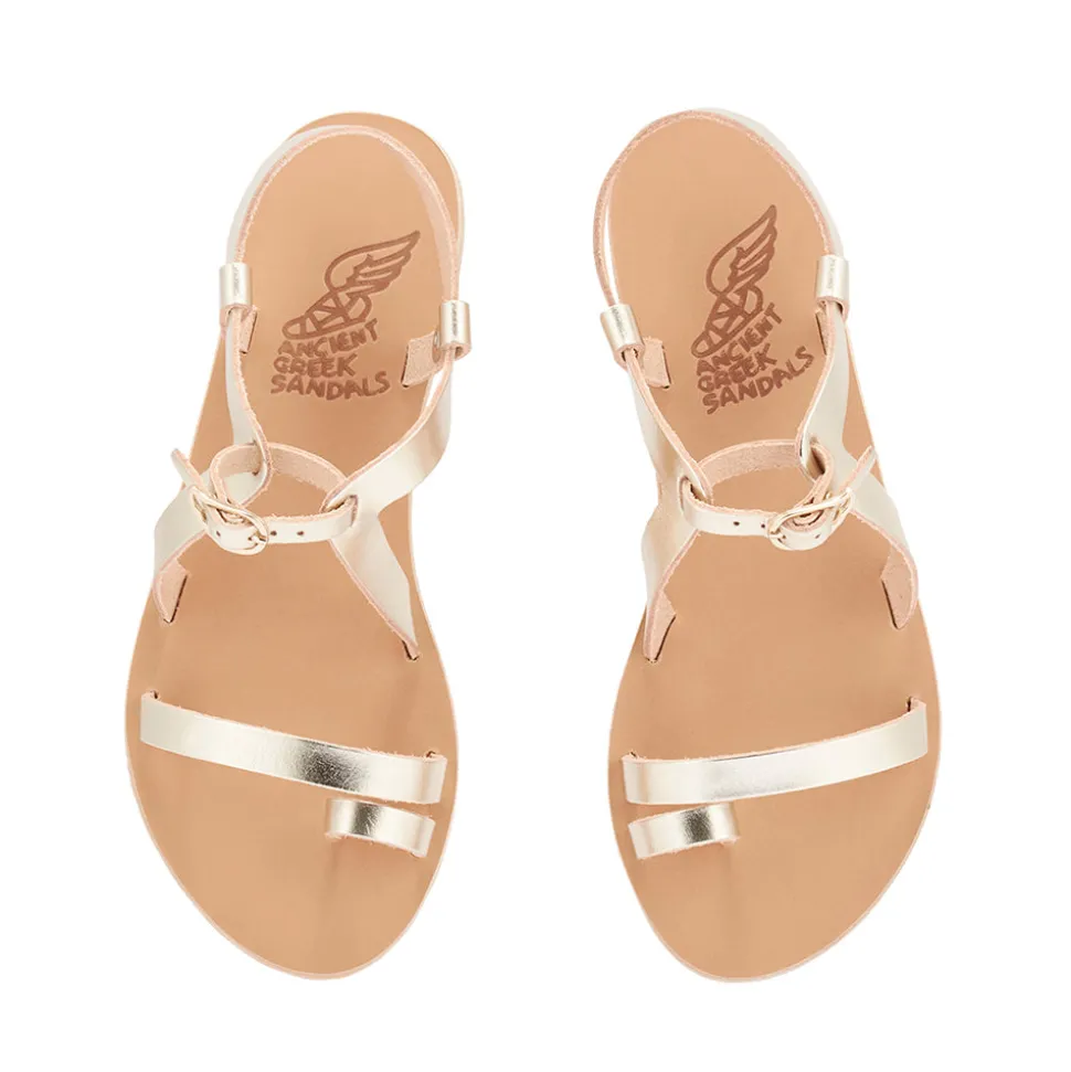 This sandal’s pretty moniker says it all: named after the Titan goddess of radiance and brightness, this classic shoe will leave you glowing whenever the sun is shining brightly. A slim front strap and neat toe loop and accompanied by a mid-foot fastening, where our signature golden buckle can twinkle in the bright sunshine. Glowing skin and a dress as bright as you feel are all that should be added to this perfectly put together flat.