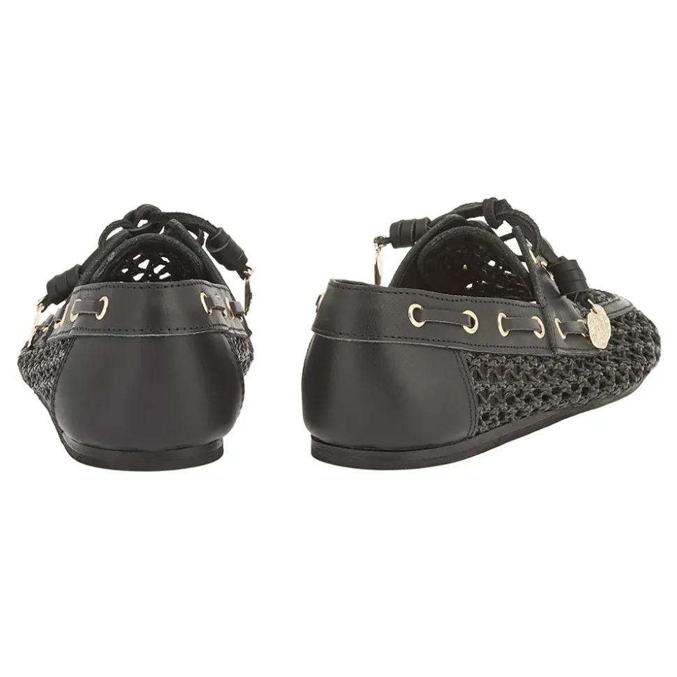 Named after the Greek word for boat, Pliaria takes the traditional preppy style and gives it a laid-back – but highly desirable – feel. Handmade in Greece to a typical boat-shoe shape, the style is given a twist with distinctive leather laces rolled to form a special knot (inspired by the father of our creative director, Christina Martini), and finished with gold charms hanging from the laces. This version taps the trend for raffia, combining it with smooth Vachetta leather and evoking memories of summer days.