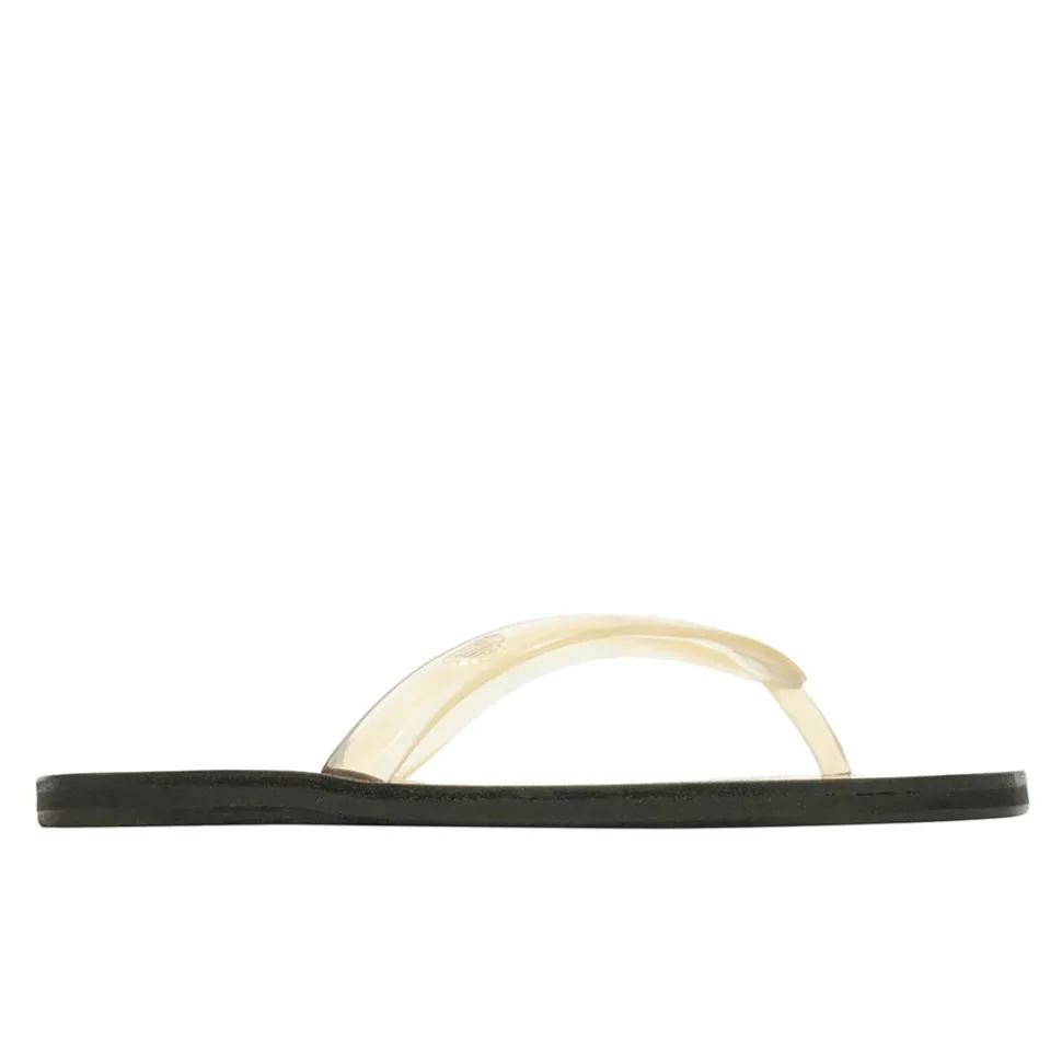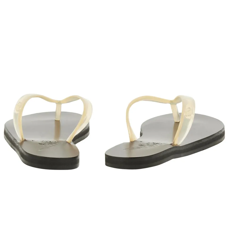The Saionara jelly flip-flop sandal bridges the gap between beach flip-flop and city sandal, with a hand-stitched leather sole giving it structure, and a jelly thong strap that sits between the toes.