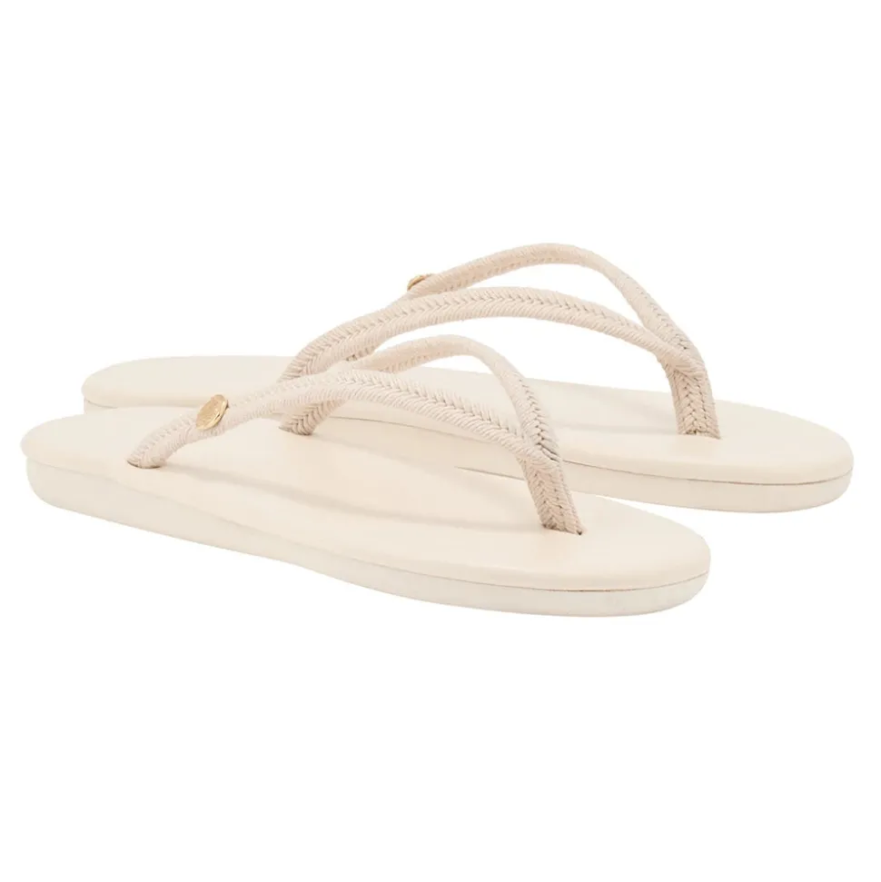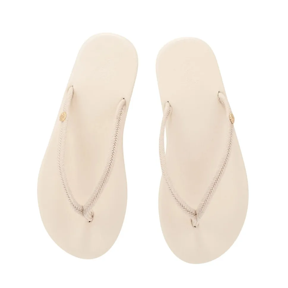 Saionara is part of our rope collection, inspired by the ropes of small boats found in Greek harbours, with uppers featuring natural cord. This is a fun and summery take on our classic flip-flop shape, available in a wide range of shades, including colourways with tonal soles for a streamlined look. All feature a decorative metal coin with our logo.