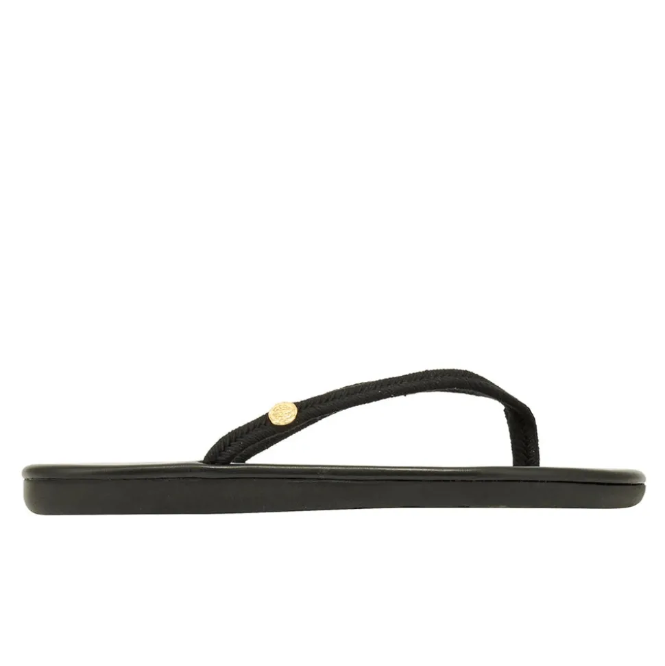 Saionara is part of our rope collection, inspired by the ropes of small boats found in Greek harbours, with uppers featuring natural cord. This is a fun and summery take on our classic flip-flop shape, available in a wide range of shades, including colourways with tonal soles for a streamlined look. All feature a decorative metal coin with our logo.