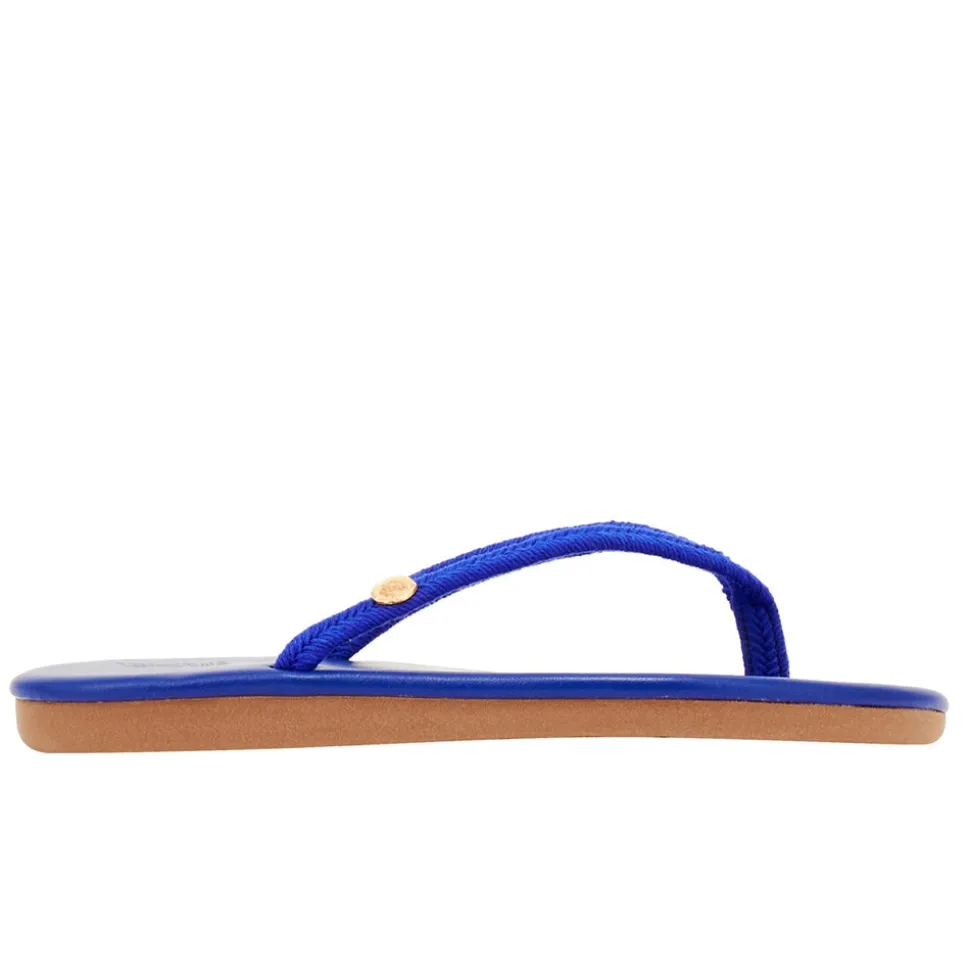Saionara is part of our rope collection, inspired by the ropes of small boats found in Greek harbours, with uppers featuring natural cord. This is a fun and summery take on our classic flip-flop shape, available in a wide range of shades, including colourways with tonal soles for a streamlined look. All feature a decorative metal coin with our logo.