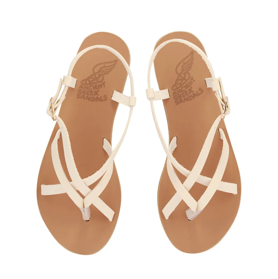 A move-on from the traditional flip-flop, this sandal has the addition of an elegant over-foot cross, fastening at the ankle with one of our signature golden wing buckles. A slim plastic sheath protects the central column for immediate comfort, while the rest of the leather upper and super soft sole are ready to wear. One of our largest colour ranges make this sandal addictive to fans, who buy just one more, year after year.