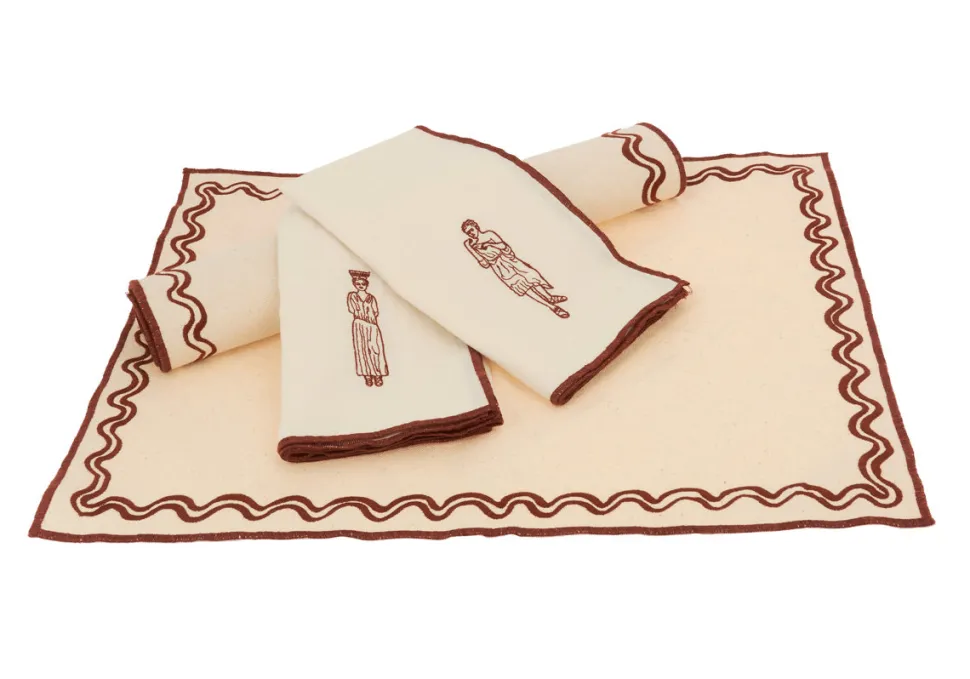 Set of 4 napkins ecru maroon