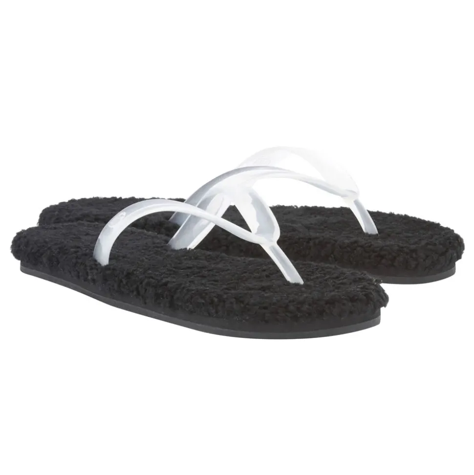 This Saionara is a simple flip-flop sandal taken in a new direction: with its jelly thong upper it recalls the ultimate in summer sandals, and with its contrasting sheepskin insole it suggests cosier moments. The contrast is the thing – wear to run errands, to entertain at home, or to make a statement on evenings out. A head-turner.