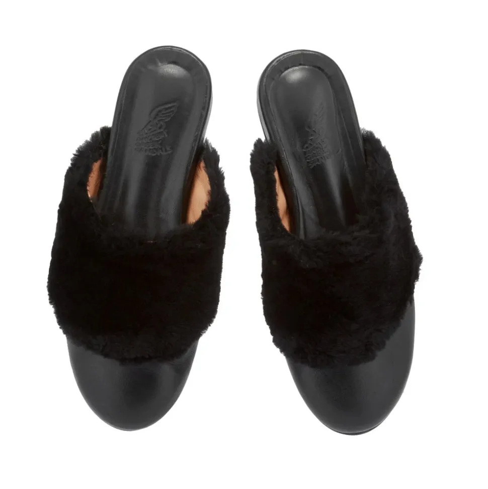 Thyone is a slip-on style in nappa leather and sheepskin – a take on our popular Slipper. Soft and comfortable, with a modern edge, it features a wide band of shearling. An ideal transitional style, we love to see Thyone styled for weekend errands, or slipped on when entertaining at home.