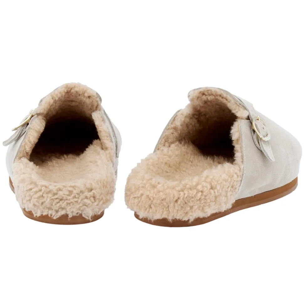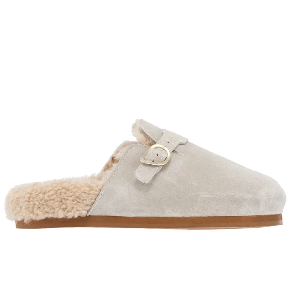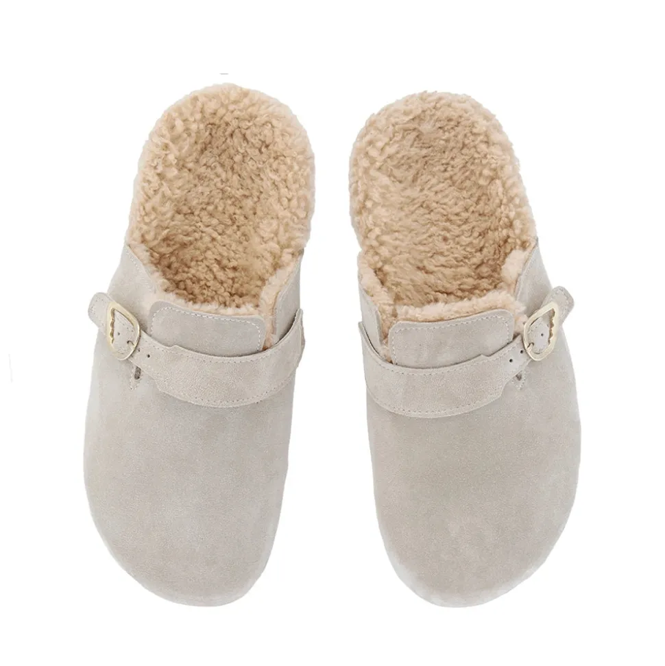 Meet Vasilitsa – robust enough to take you around town, comfortable enough to make you wonder if you really need to leave home at all. The cocooning footbed is lined in sheepskin, and the rounded closed toe is crafted in Crosta suede and finished with an accent strap and signature wing-shape buckle.