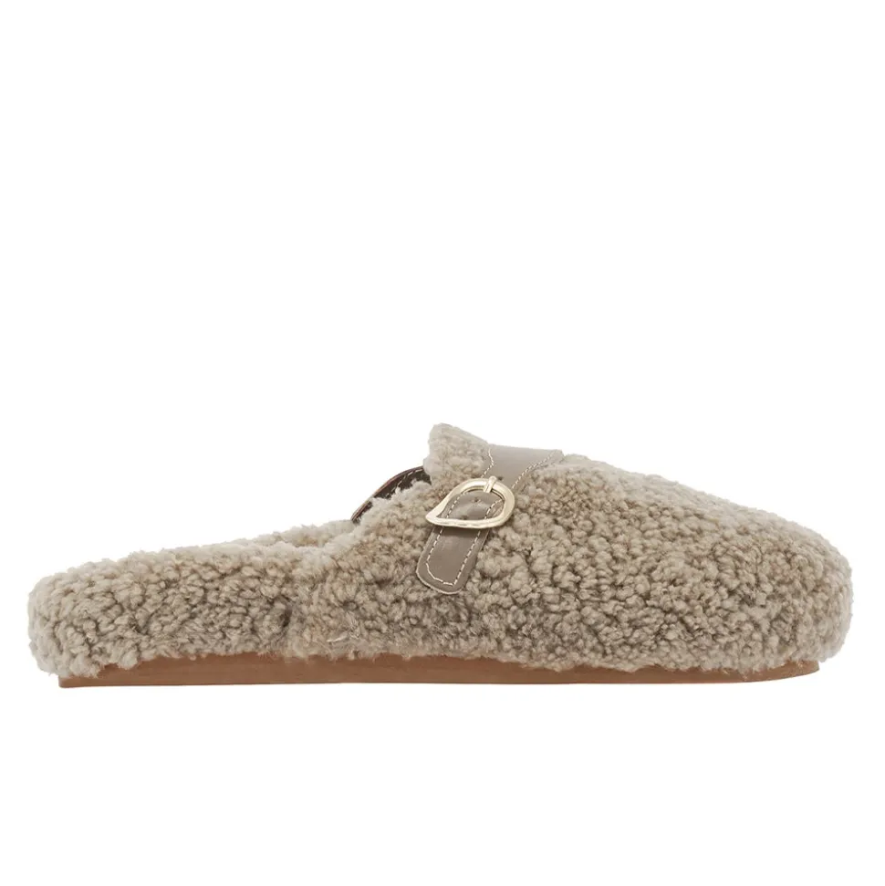 Meet Vasilitsa – robust enough to take you around town, comfortable enough to make you wonder if you really need to leave home at all. The cocooning footbed and the rounded closed toe are both crafted in sheepskin and the upper is finished with an accent strap and signature wing-shape buckle. Choose your shade from two relaxed neutrals.