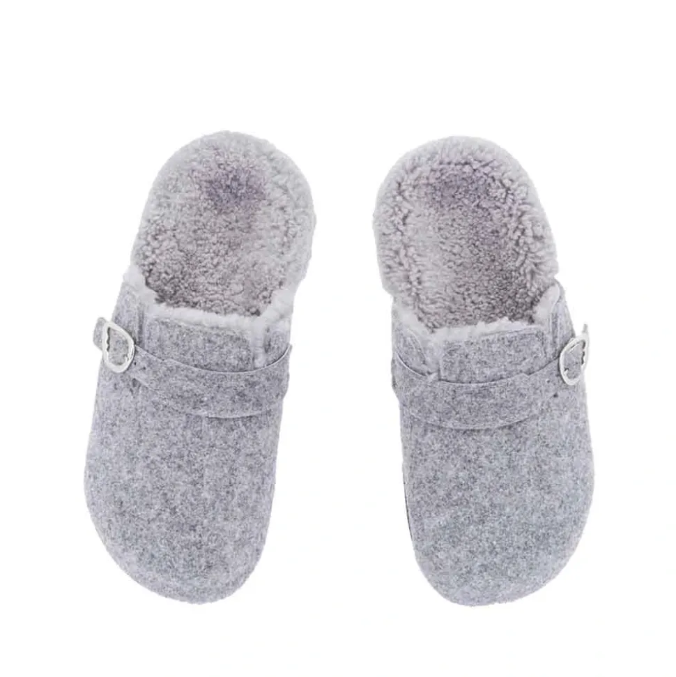 Meet Vasilitsa – robust enough to take you around town, comfortable enough to make you wonder if you really need to leave home at all. The cocooning footbed is lined in sheepskin, and the rounded closed toe is finished in felt with an accent strap and signature wing-shape buckle. Choose the neutral shade that works with your wardrobe.