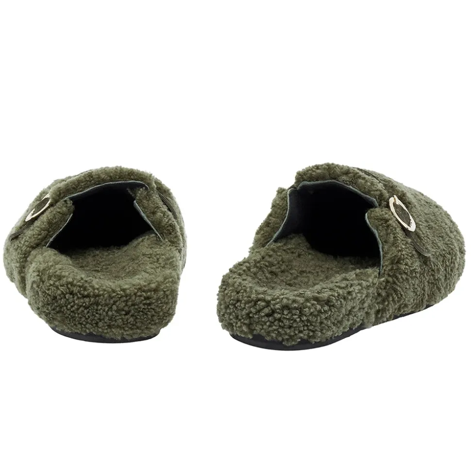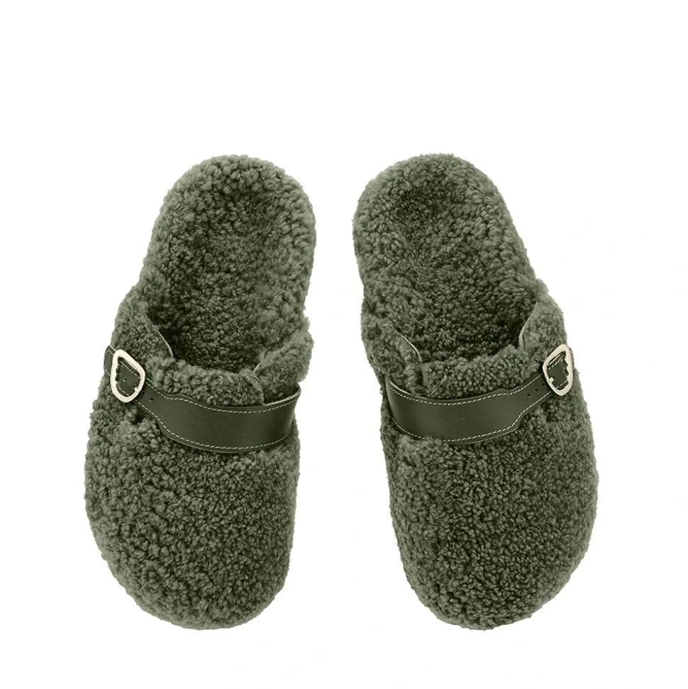 Meet Vasilitsa – robust enough to take you around town, comfortable enough to make you wonder if you really need to leave home at all. The cocooning footbed and the rounded closed toe are both crafted in sheepskin and the upper is finished with an accent strap and signature wing-shape buckle. Choose your shade from two relaxed neutrals.