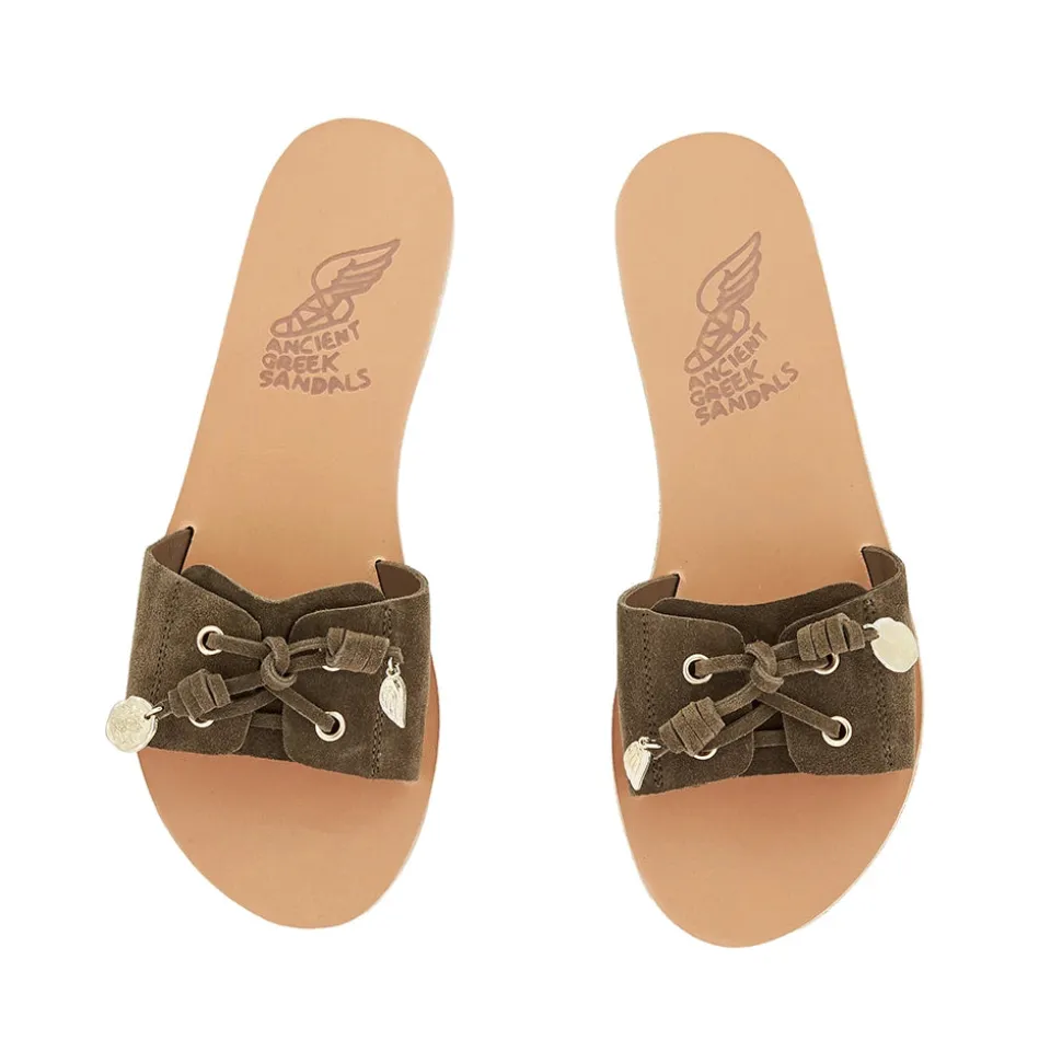 We’re calling Verina the ‘boat shoe sandal’; it takes its cues from Pliaria, our modern twist on the boat shoe, with signature lacing, leather knots and tiny metal charms across the front. Verina is a simple slip-on sandal, crafted in soft Crosta suede and built on our minimalist flip-flop sole for a streamlined look. Choose your shade.
