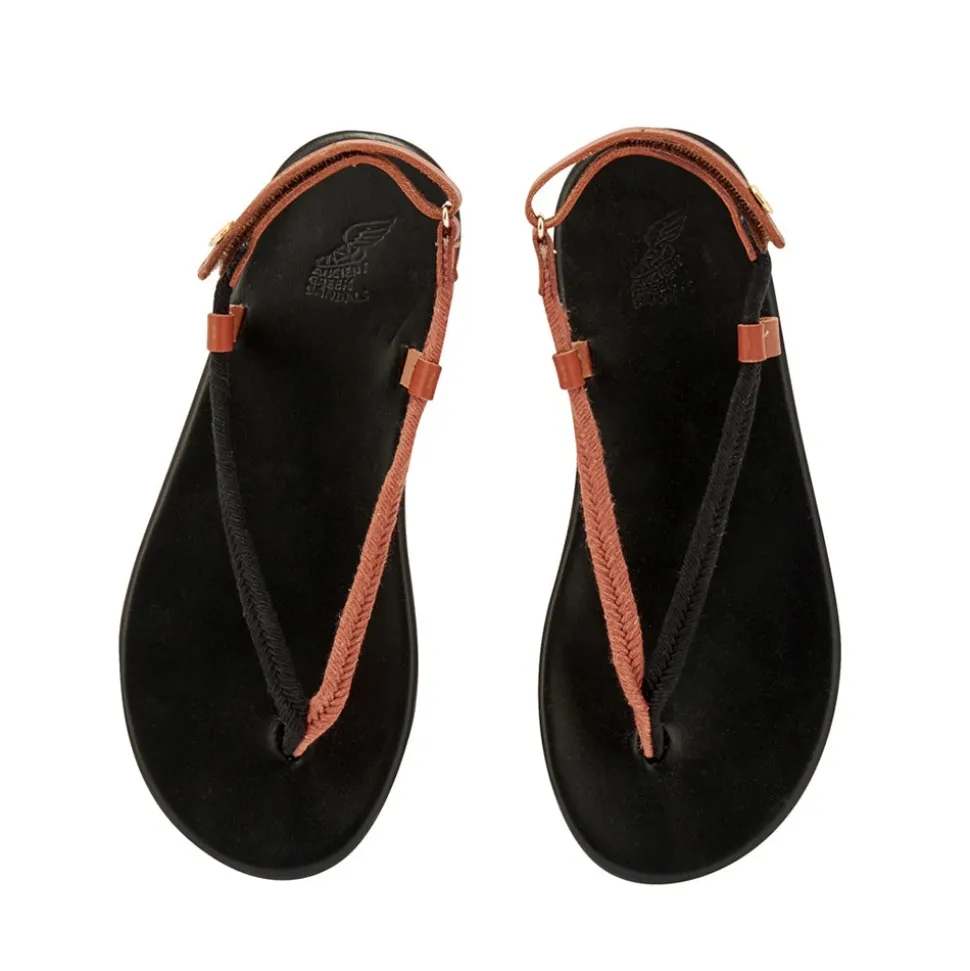 Zoi is part of our rope collection, inspired by the ropes of small boats found in Greek harbours, with uppers featuring natural cord. Zoi features a thong-style upper with a backstrap and a decorative metal coin featuring our logo. This is a fun and summery sandal, available in a wide range of shades.