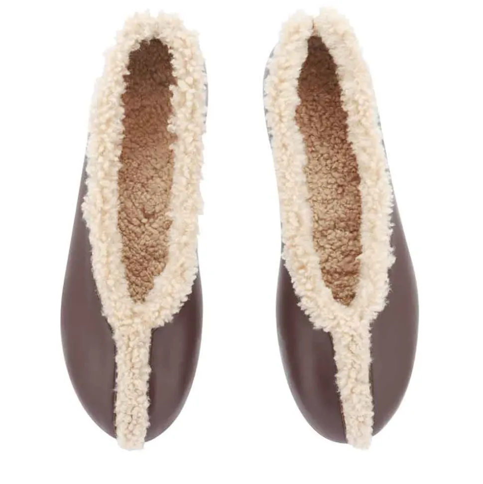 In nappa leather with sheepskin trims that run around the edge of the foot and down the centre of the vamp for a bold detail, this version of Aeropi offers a head-turning twist on the ballerina style that’s perfect for cooler weather. This is a slip-on shoe that you’ll reach for again and again for instant modern elegance and to add some texture to your look.