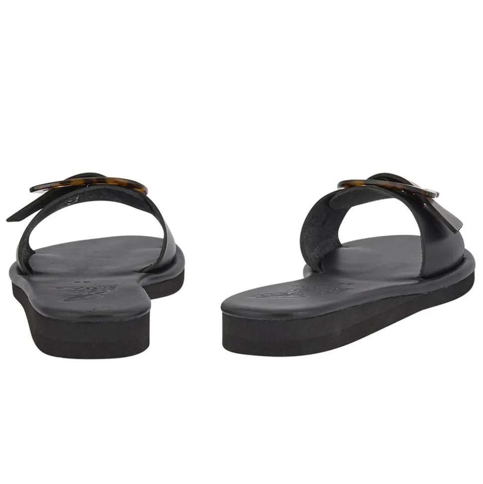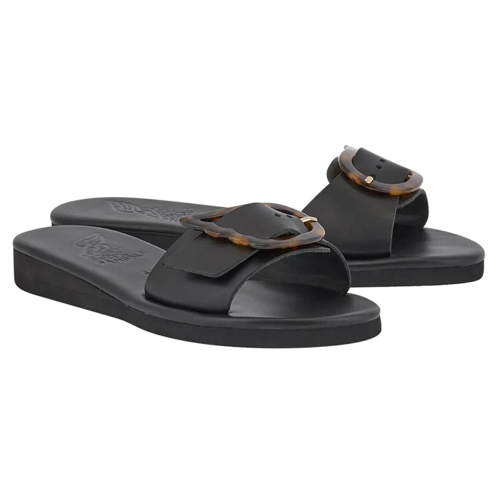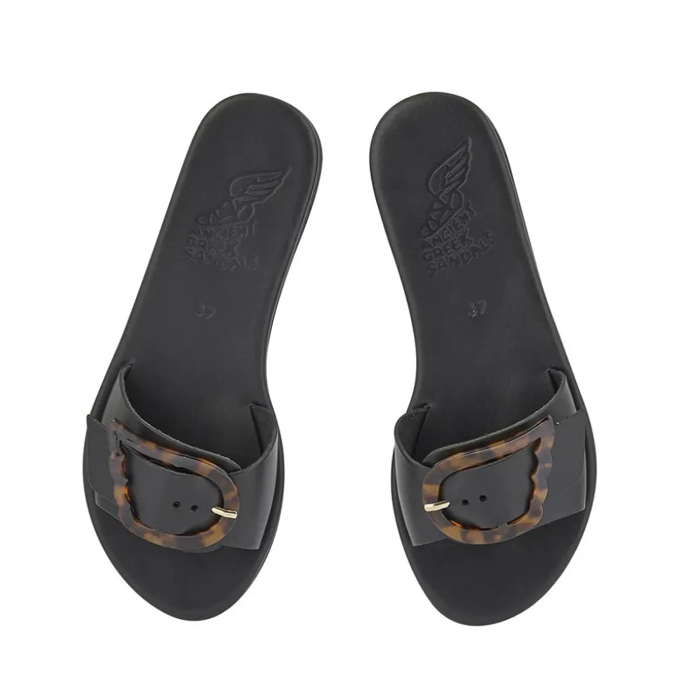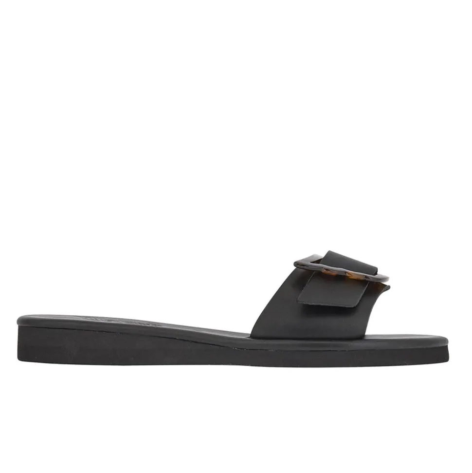 Rendered in high-shine leather and adorned with an over-sized wing buckle, these sandals are the sleek fashion-forward option for day-to-night city adventures. One simple strap across the foot secures the shoe, making them an easy addition to any warm-weather look.