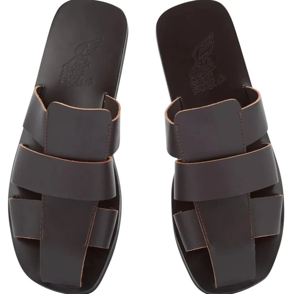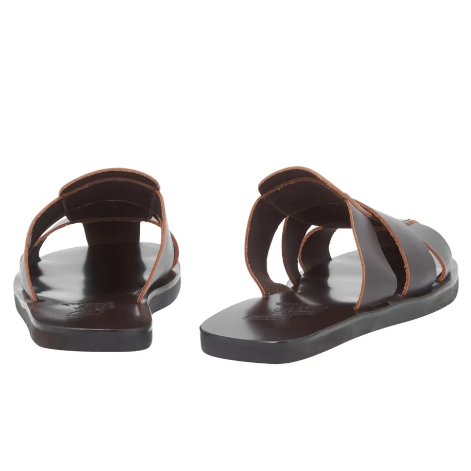 The Andreas is a slip-on style that plays on timeless design rooted in Greek craftsmanship – the signature aesthetic of Ancient Greek Sandals. Interwoven bands of vachetta leather sit on our footbed sole, which gives a little extra cushioning, and a bit more of a rugged look. Visible topstitching is the extra detail that sets these slides apart. Like all Ancient Greek Sandals’ creations, the Andreas is handmade in Greece.