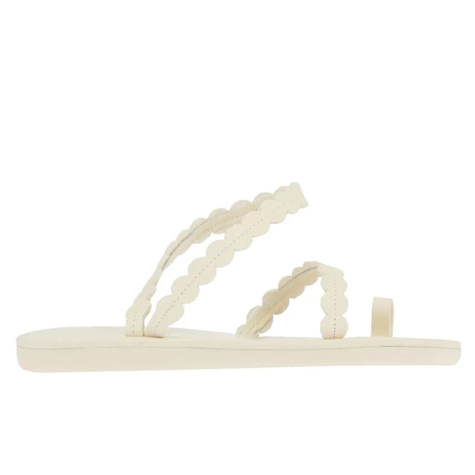 Aura’s cut-out leather straps wrap elegantly around the foot with simple stitching and a loop of leather around the toe. The aesthetic is barely there, but there’s a little more support in this sole than our original leather sole. Choose for elegance and support on vacation.