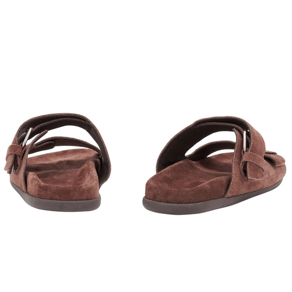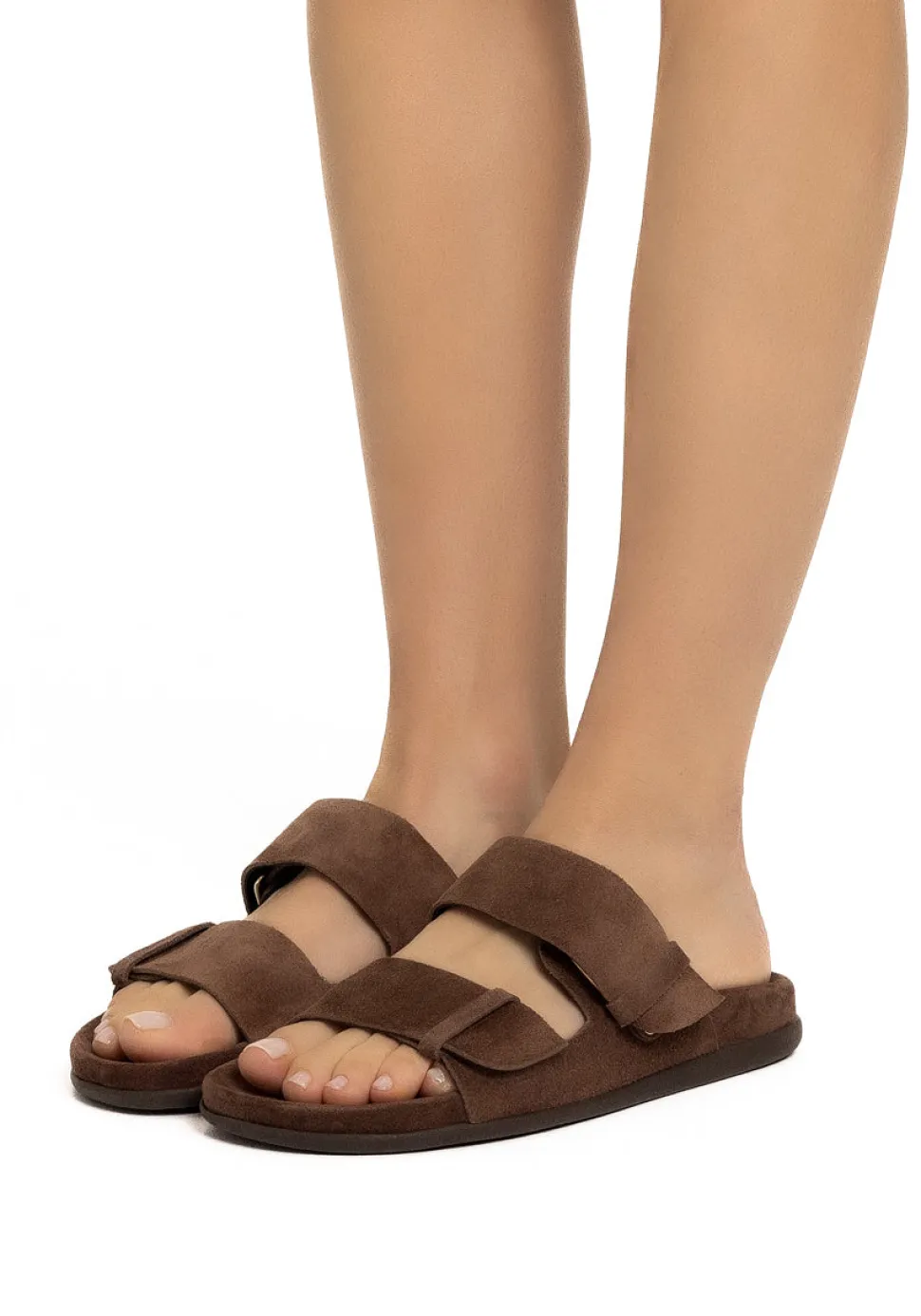 The architectural shaping of Diogenia is the kind of simplicity that makes a statement. Modelled on a menswear style, the wide crosta suede bands thread through loops of the same fabrication for a streamlined look that’s easy to wear. The in-sole is lined in the same super-soft suede for a luxurious feel. Diogenia is robust enough to ground your look – denim is a natural partner, and Diogenia is a great city sandal you’ll wear for summers to come.