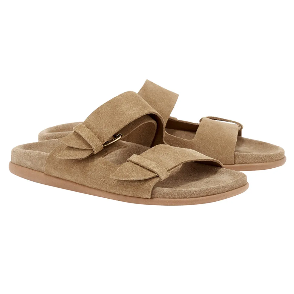The architectural shaping of Diogenia is the kind of simplicity that makes a statement. Modelled on a menswear style, the wide crosta suede bands thread through loops of the same fabrication for a streamlined look that’s easy to wear. The in-sole is lined in the same super-soft suede for a luxurious feel. Diogenia is robust enough to ground your look – denim is a natural partner, and Diogenia is a great city sandal you’ll wear for summers to come.