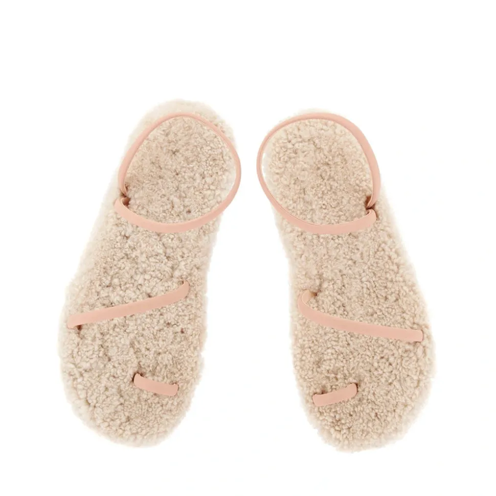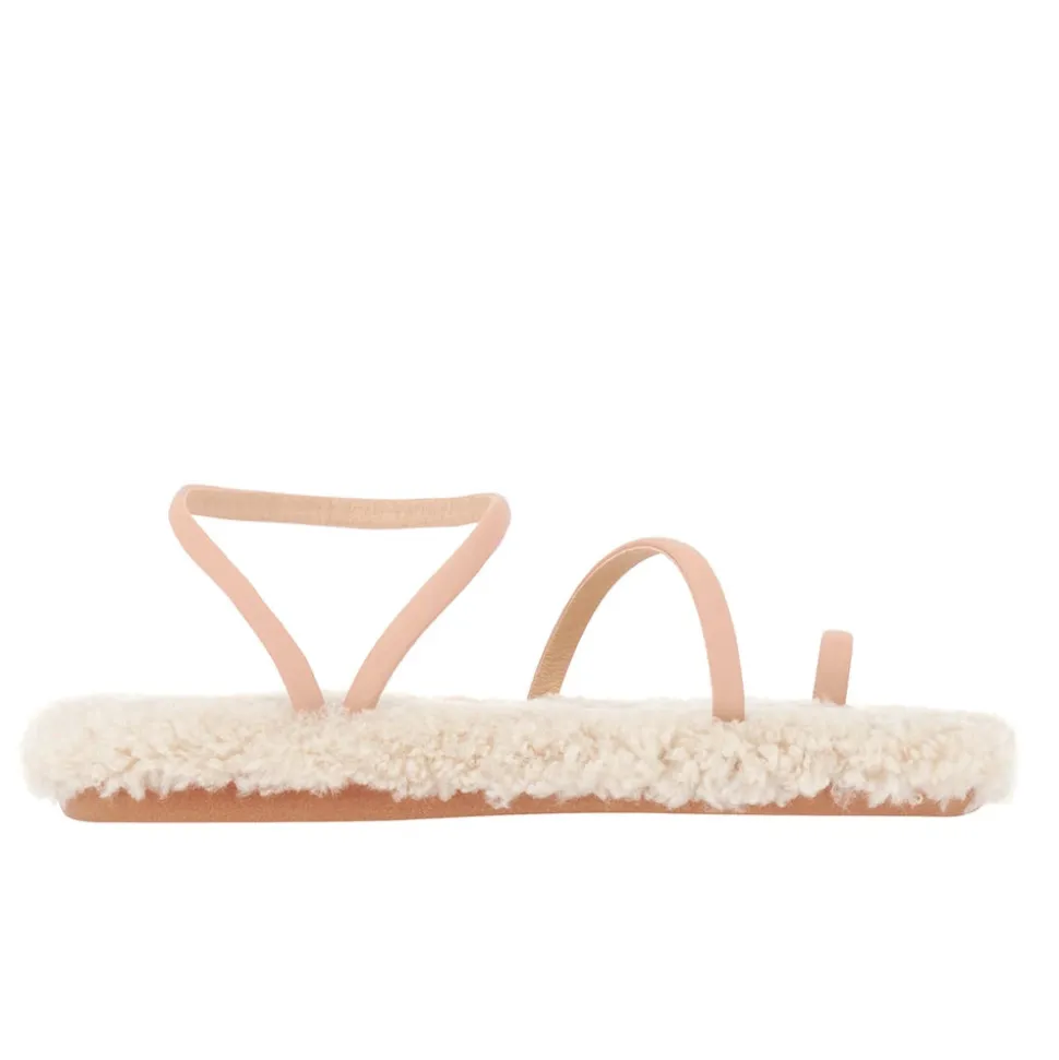 The barely-there Eleftheria sandal has a new trick: a sheepskin-lined cushioned insole. There’s a playful contrast between the minimalist nappa leather straps and the luxurious texture of the sheepskin, creating a head-turning style that’s a seasonal must. We love this style with a floor-sweeping dress for entertaining at home.