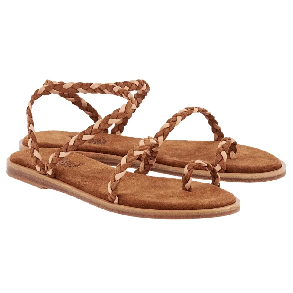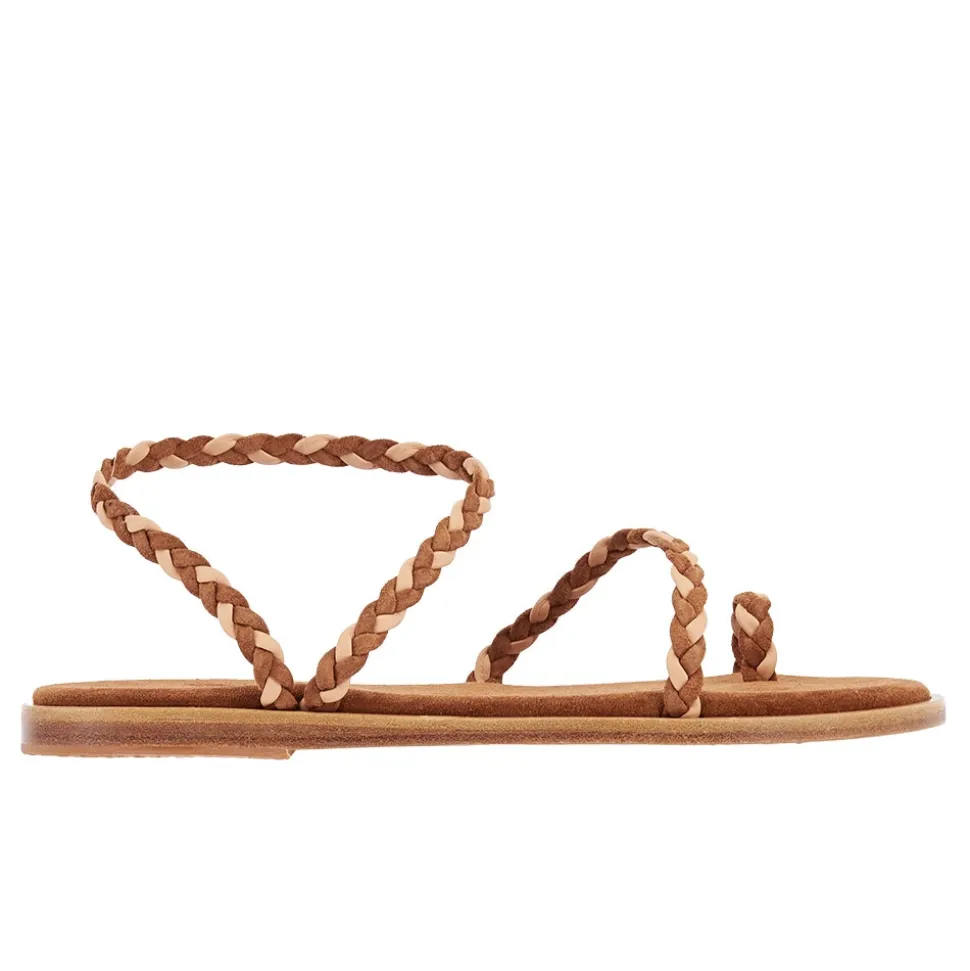 Eleftheria is one of our iconic styles, with its fine braided straps that snake elegantly around the foot. This version is constructed in costa suede and on our elevated sole, which gives a streamlined effect with added comfort. Choose one of our elegant, tonal shades.