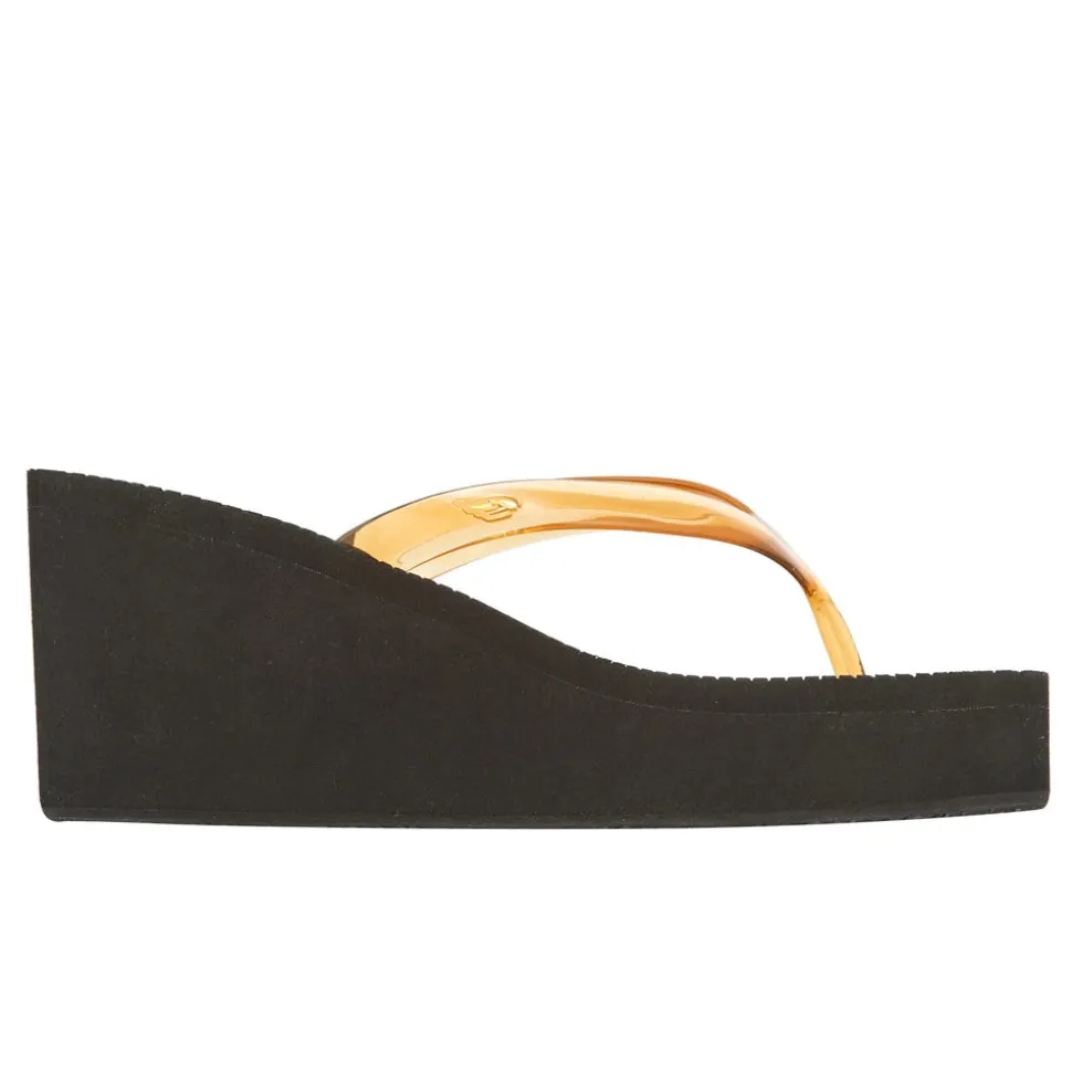 One of our most fun, eyecatching styles, Etheria takes a classic flip flop upper, reimagines it in our recyclable ‘jelly’ PVC and adds a lift via an 8cm exaggerated EVA wedge. The subtle lug detailing on the bottom provides grip and a robust look. Etheria is perfect for summer days and nights.