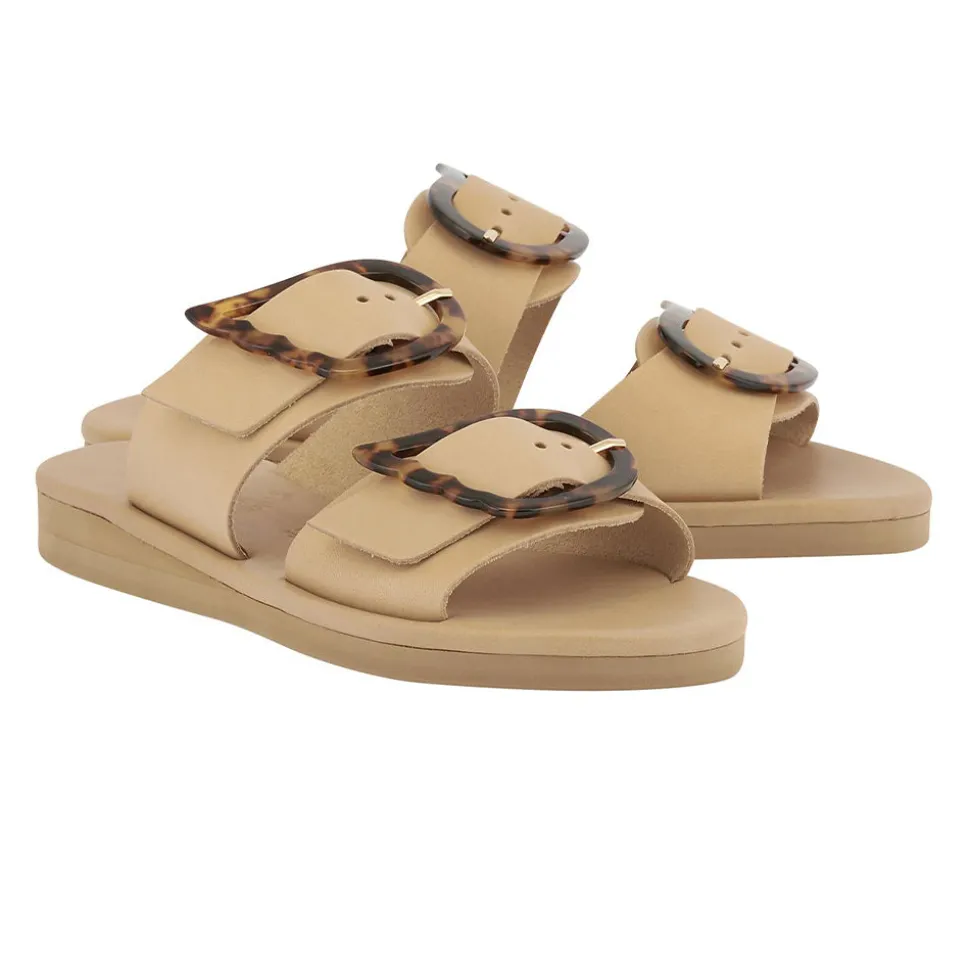 Rendered in high-shine leather and adorned with an over-sized wing buckle, these sandals are the sleek fashion-forward option for day-to-night city adventures. Two broad straps, each bearing our signature buckle, secure the foot – making them perfect for a summer on the go.