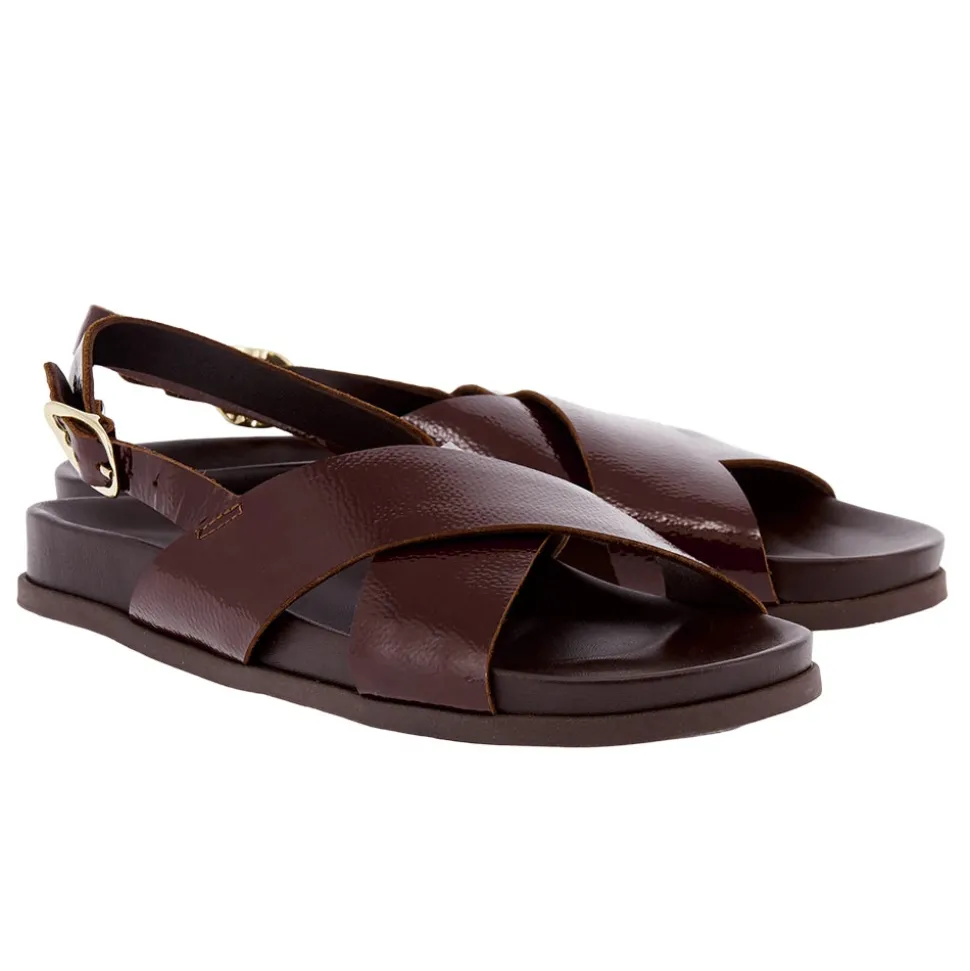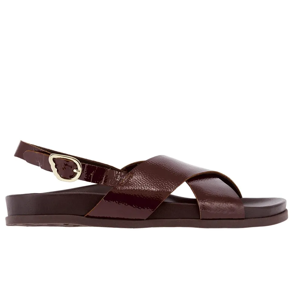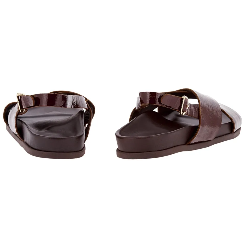 Ikesia is simple and streamlined – two wide bands cross over the foot, and a single slender strap holds the foot in place, with our signature winged buckle. This iteration incorporates our new footbed construction: we’ve redesigned this comfort-focused sole for enhanced anatomical support and all-day comfort, while making the shape more refined than ever – note the slimmer sole and elevated styling. One of our iconic styles, this version is constructed in Naplak leather, high-shine with a distinctive crinkled texture.