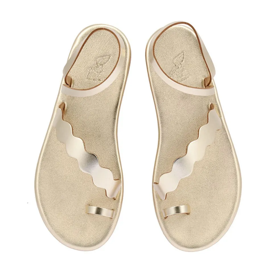 Named after the Greek word for coral, our Koralia sandals are handmade from sus-tainably sourced, recycled leather. Cut with a slightly elevated sole and fitted with a comfortable toe post, this glamorous gold design is also effortlessly comfortable.