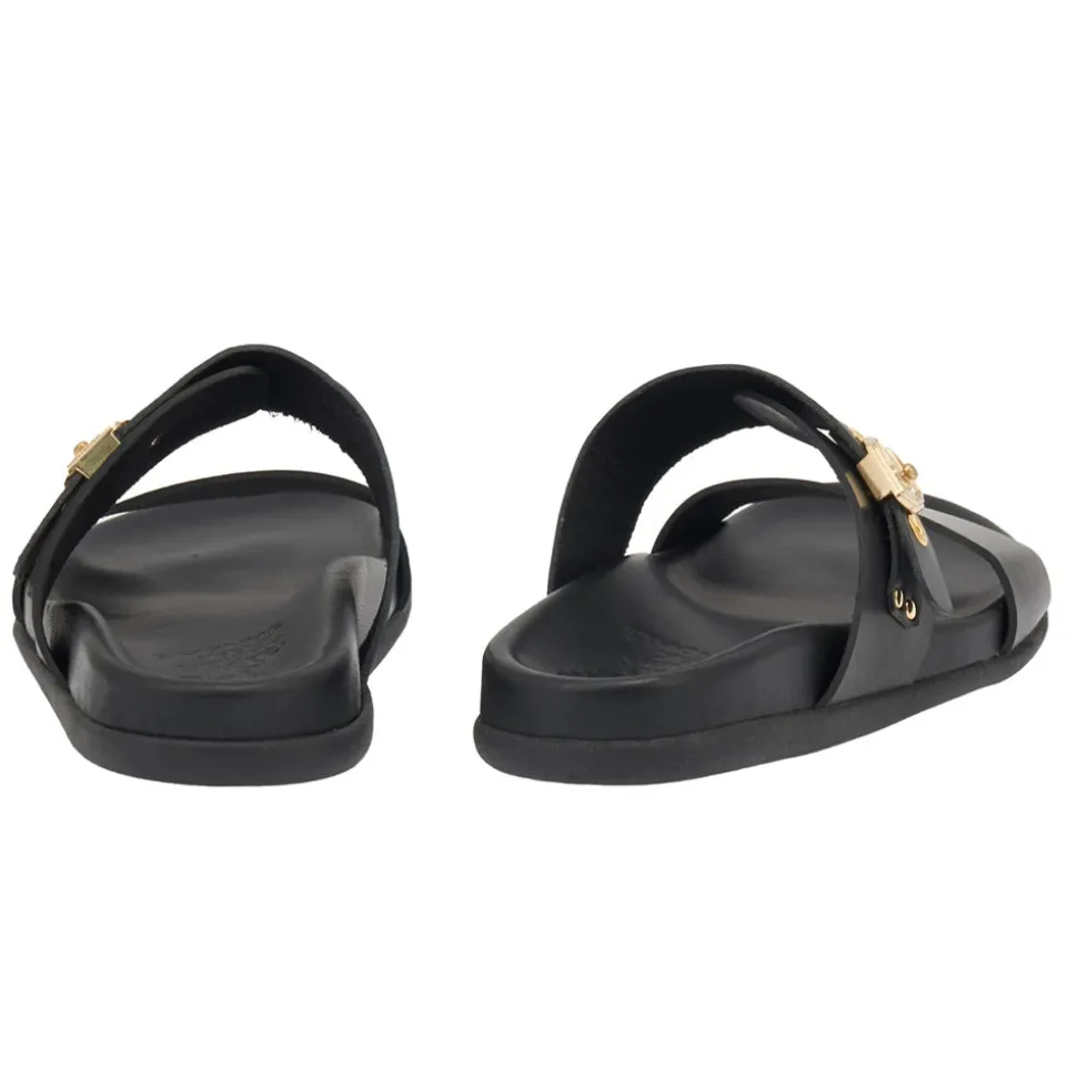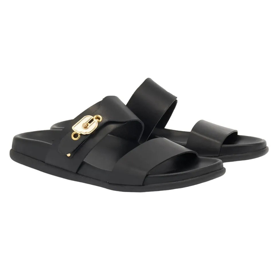 For Resort 23, a brand-new construction has been developed to be worn all day with comfort. The molded footbed gives extra comfort and arch support and is covered in soft nappa leather in tone with the vachetta leather uppers. This new construction is featured on our new Latria which is a double strap slide.