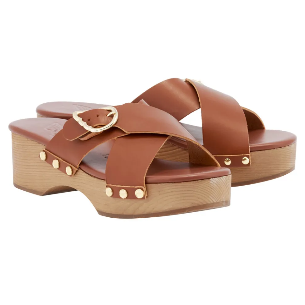 Our iconic clogs are making a comeback. The Marilisa Sabot makes a statement, with its 4cm wooden platform and crossover straps with signature buckle. All our clogs feature a lightweight wooden sole, soft padded insole and anti-slip rubber grip for a comfortable, wearable clog. The Marilisa Sabot would look great with pared-back separates for the office or denim at the weekend.