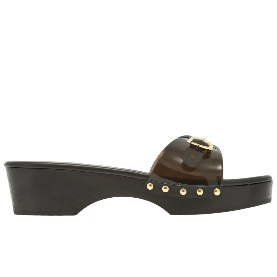 Two nostalgic trends, one modern style: our clog sole is complemented with jelly uppers to create this eyecatching sandal. The Omonia has a low platform and single strap with signature buckle. All our clogs feature a lightweight wooden sole, soft padded insole and anti-slip rubber grip for a comfortable, wearable shoe. This style will look at home with denim in the city, midi skirts on vacation – have fun with styling.