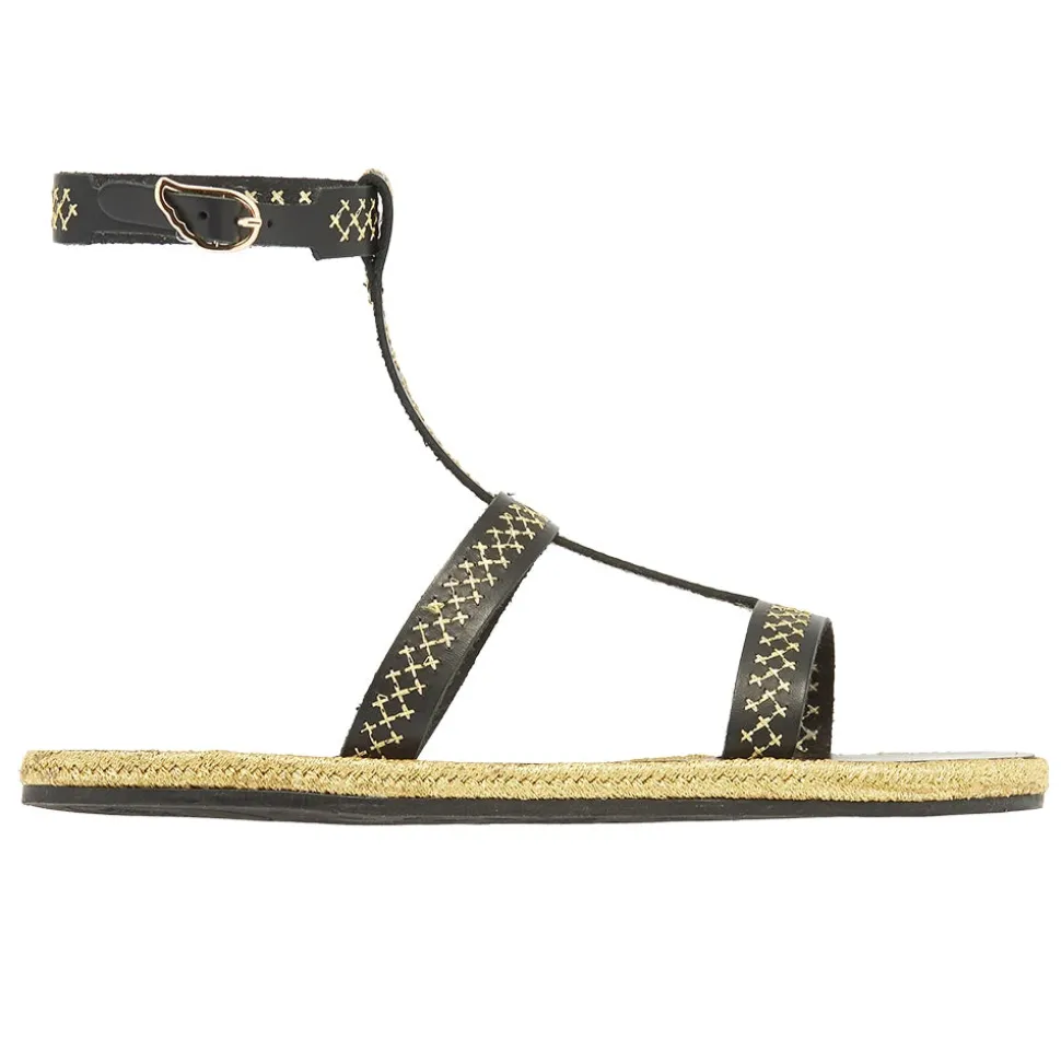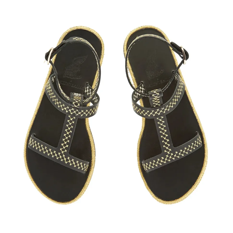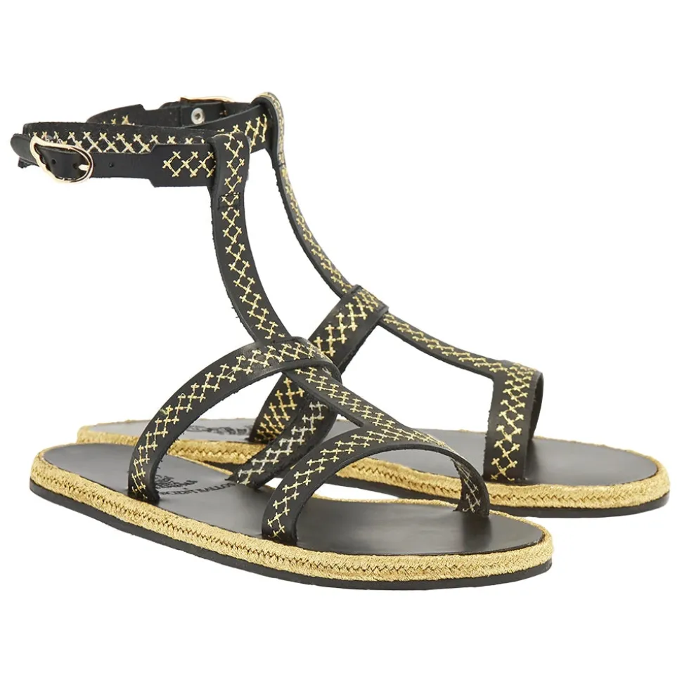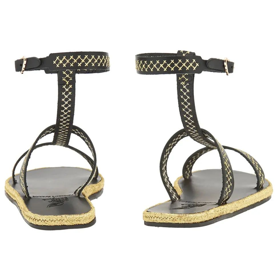 Created in close collaboration with sustainably-focused resort wear brand Ancient Kallos, this limited-edition espadrille sandal is adorned with traditional golden cord – a signature element of Ancient Kallos. The cross-stitch embroidery plays across the natural tan leather in whichever shade you choose – and ties in with the slimline espadrille rope sole, also in glimmering gold. Note the Ancient Greek Sandals signature winged buckle at the ankle. This is an elegant sandal that prioritizes detail – pair with simple summer separates or pieces that highlight traditional craftsmanship.